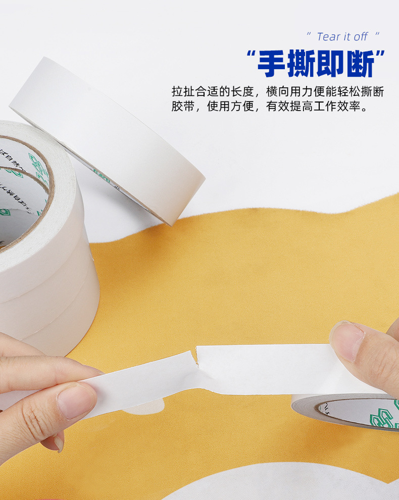 メーカー現物高粘強力両面テープ大量卸売り白色手裂き両面テープ綿紙両面テープ