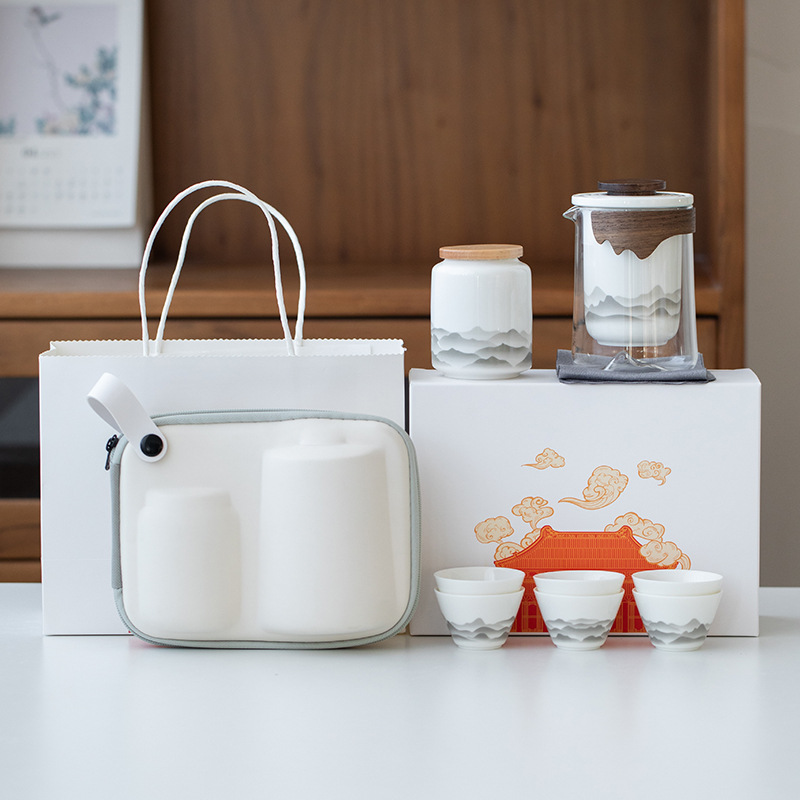 セラミックトラベルティーセットポータブルセットアウトドアトラベル一人用クイックカップハイエンドビジネスギフトロゴ