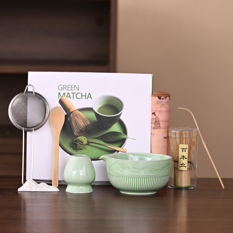 クロスボーダーセラミック抹茶ボウル抹茶セット茶筌竹抹茶ブラシ百本ドットティーセットアクセサリーギフトボックス