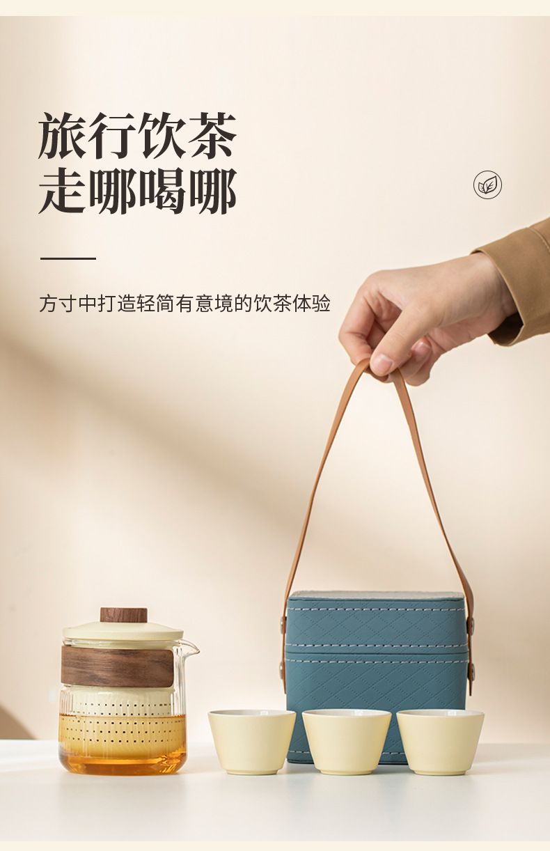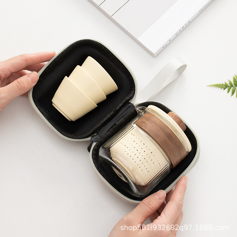 ポータブルガラス旅行茶道具セット一本三杯屋外旅行携帯ティーポット