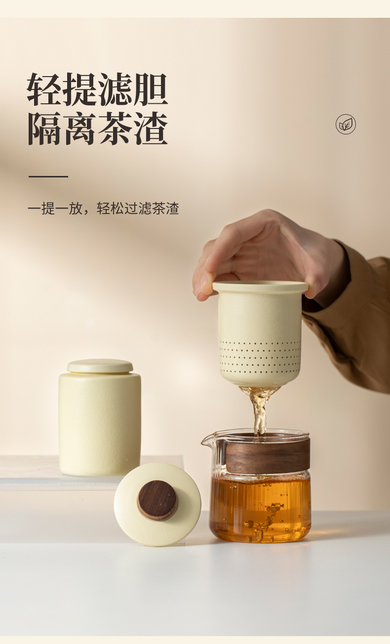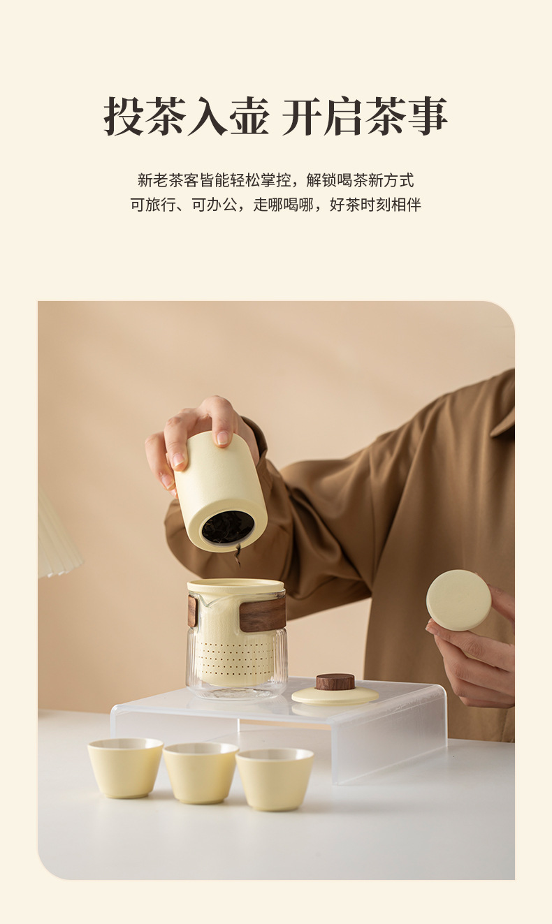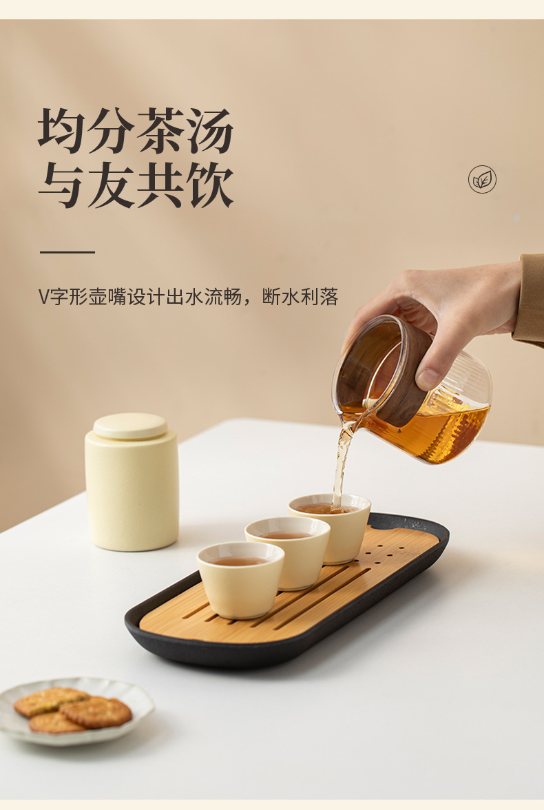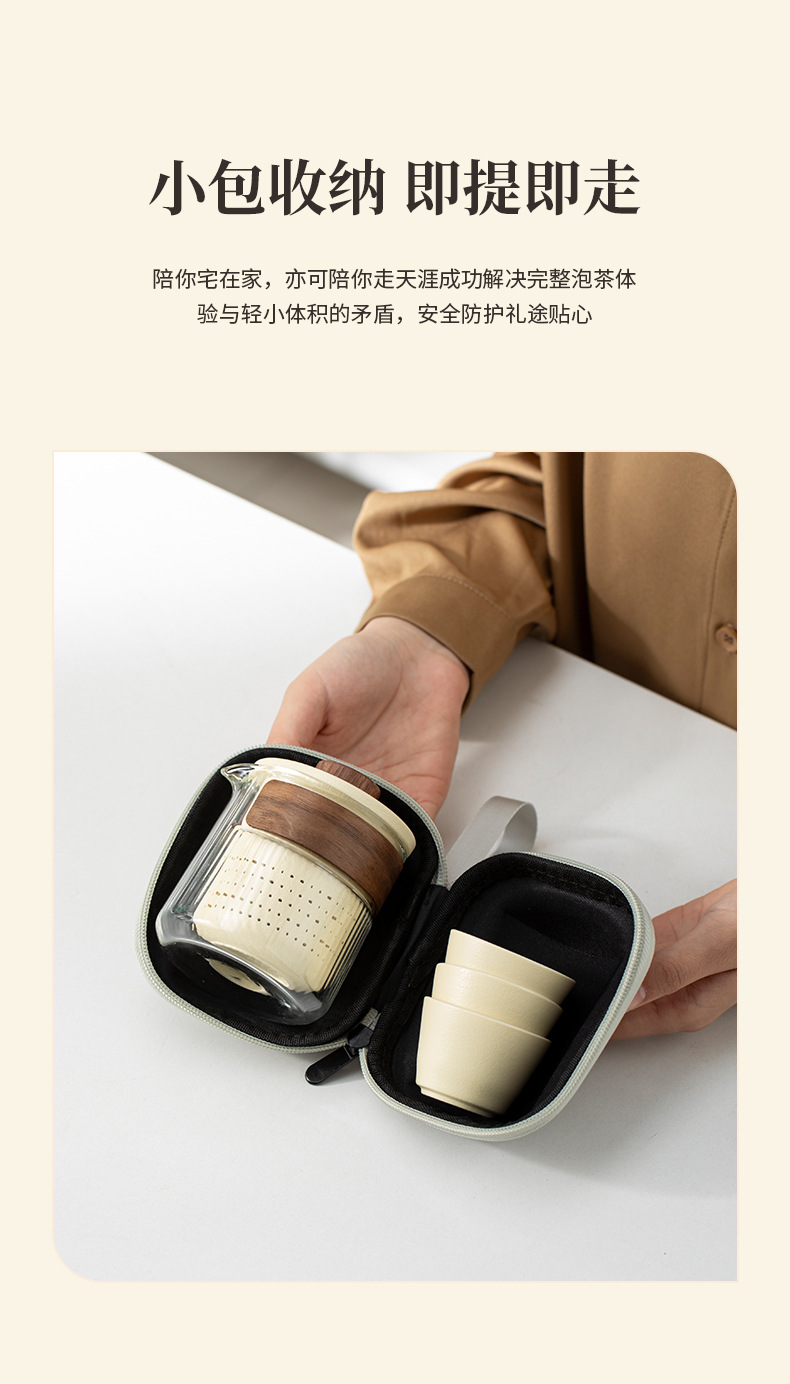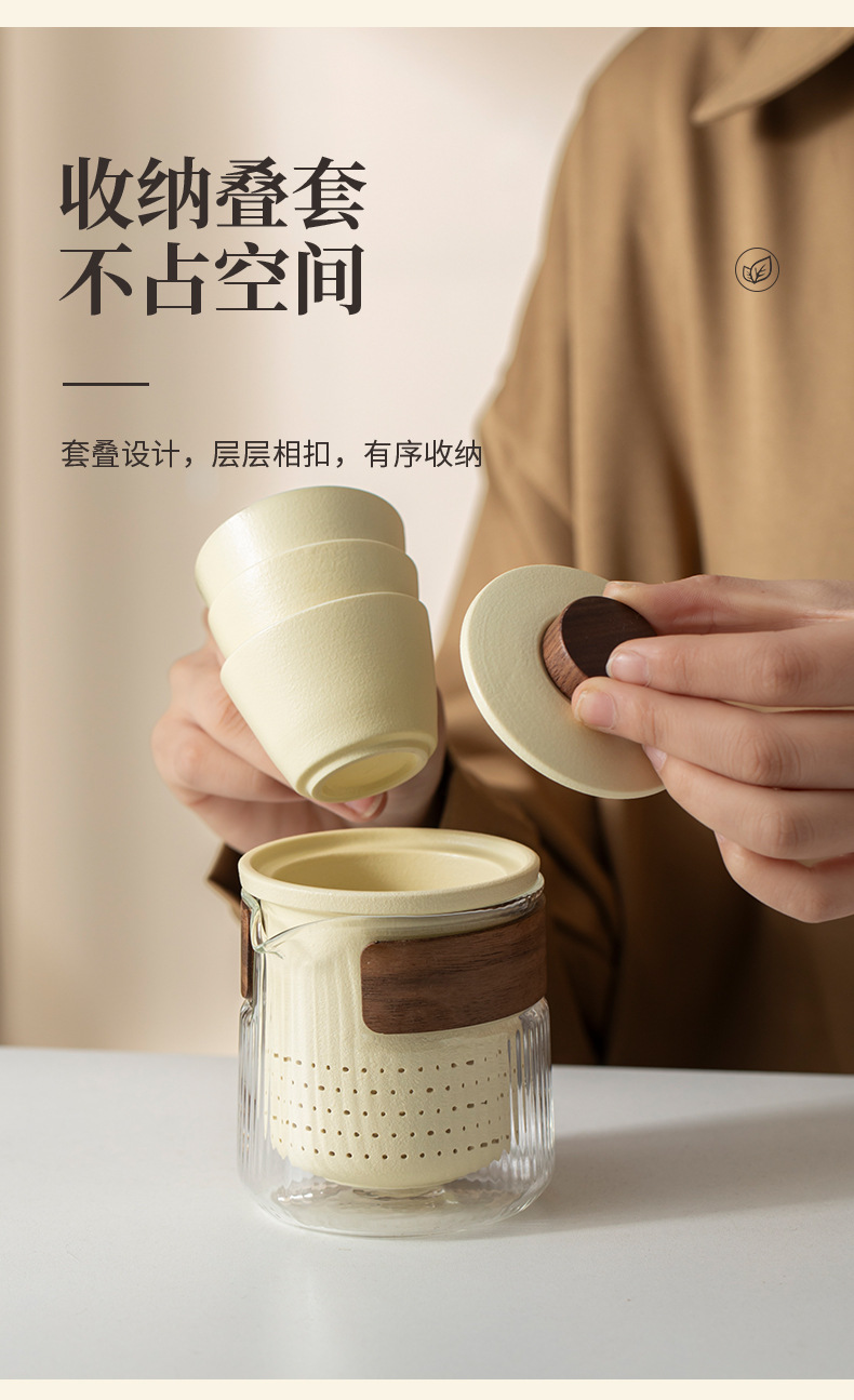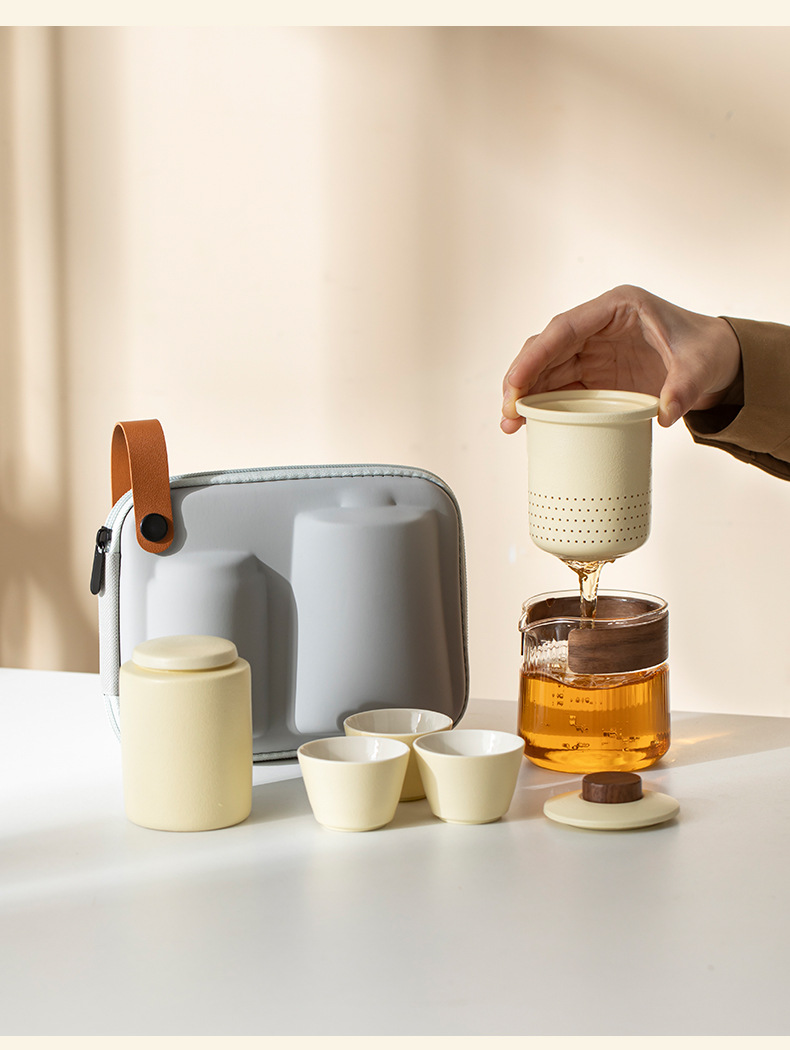 また山雨ポータブル遠山旅行茶器セット屋外ガラス快客カップ1ポット3杯ティーポット
