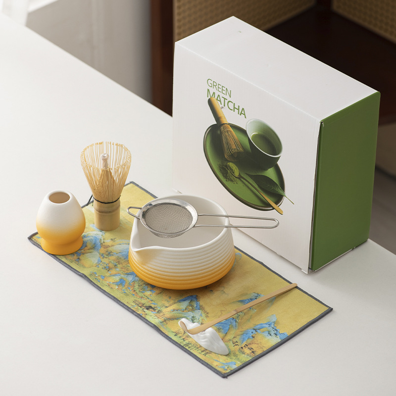 日本製抹茶茶器セット 8点セット ルボ グラデーション抹茶茶碗 注ぎ口付き 茶道アクセサリー 茶筅セット