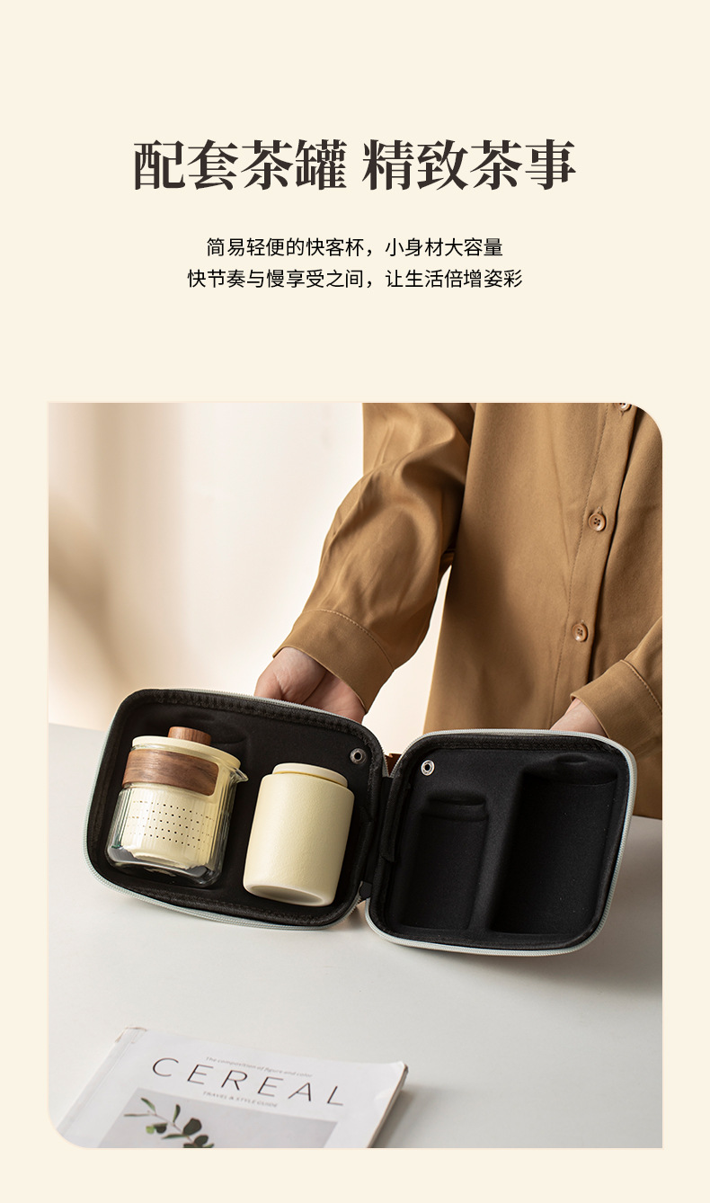 又见山雨便携式玻璃旅行茶具陶瓷快客杯户外个人随身杯活动伴手礼