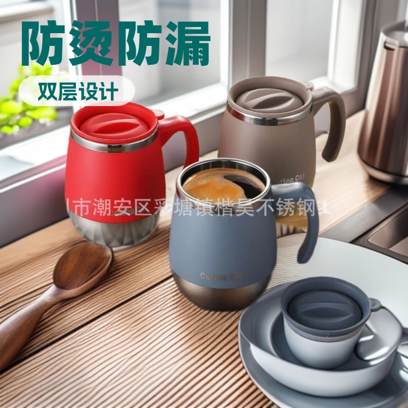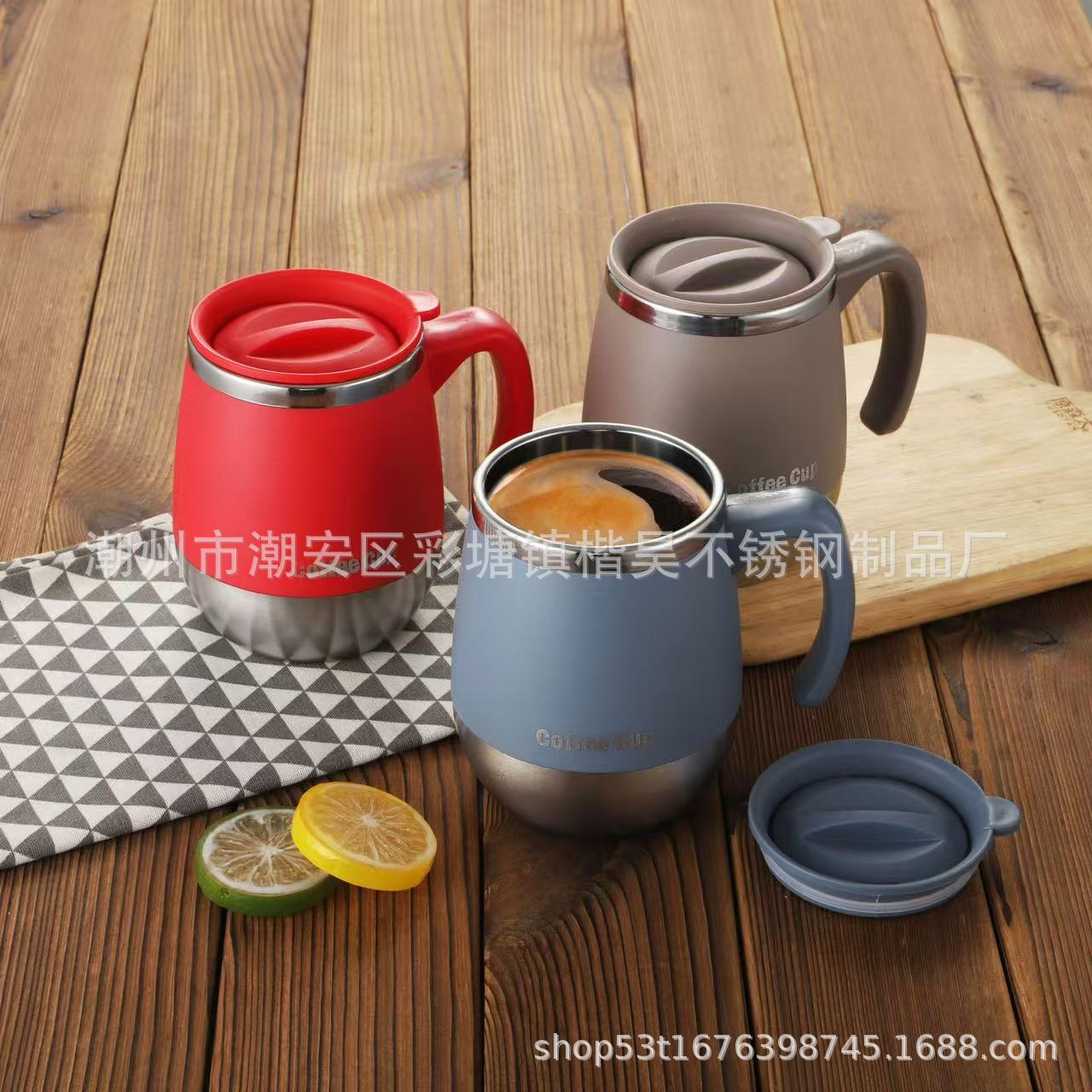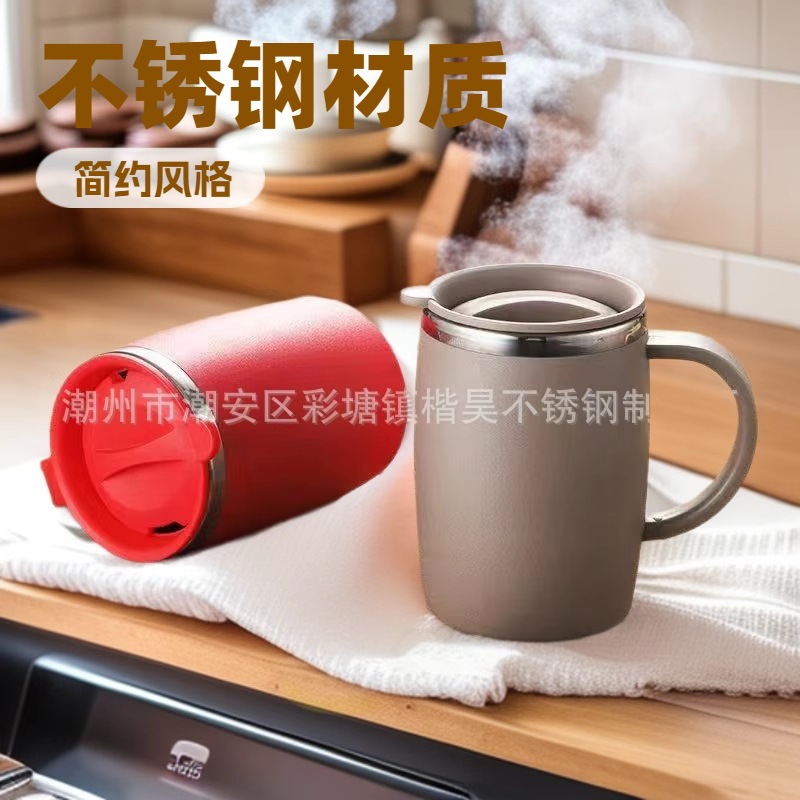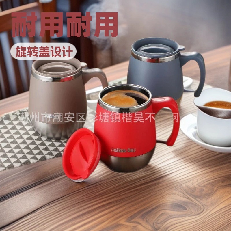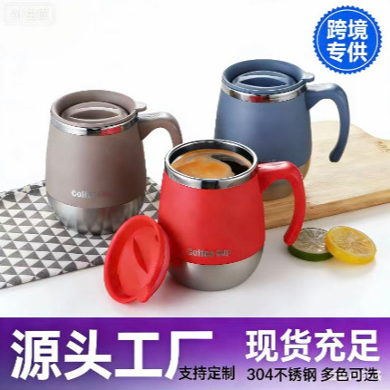 ステンレスマグカップクロスボーダー専用コーヒーカップオフィス二重断熱ハンドルカップ家庭用ティーカップ