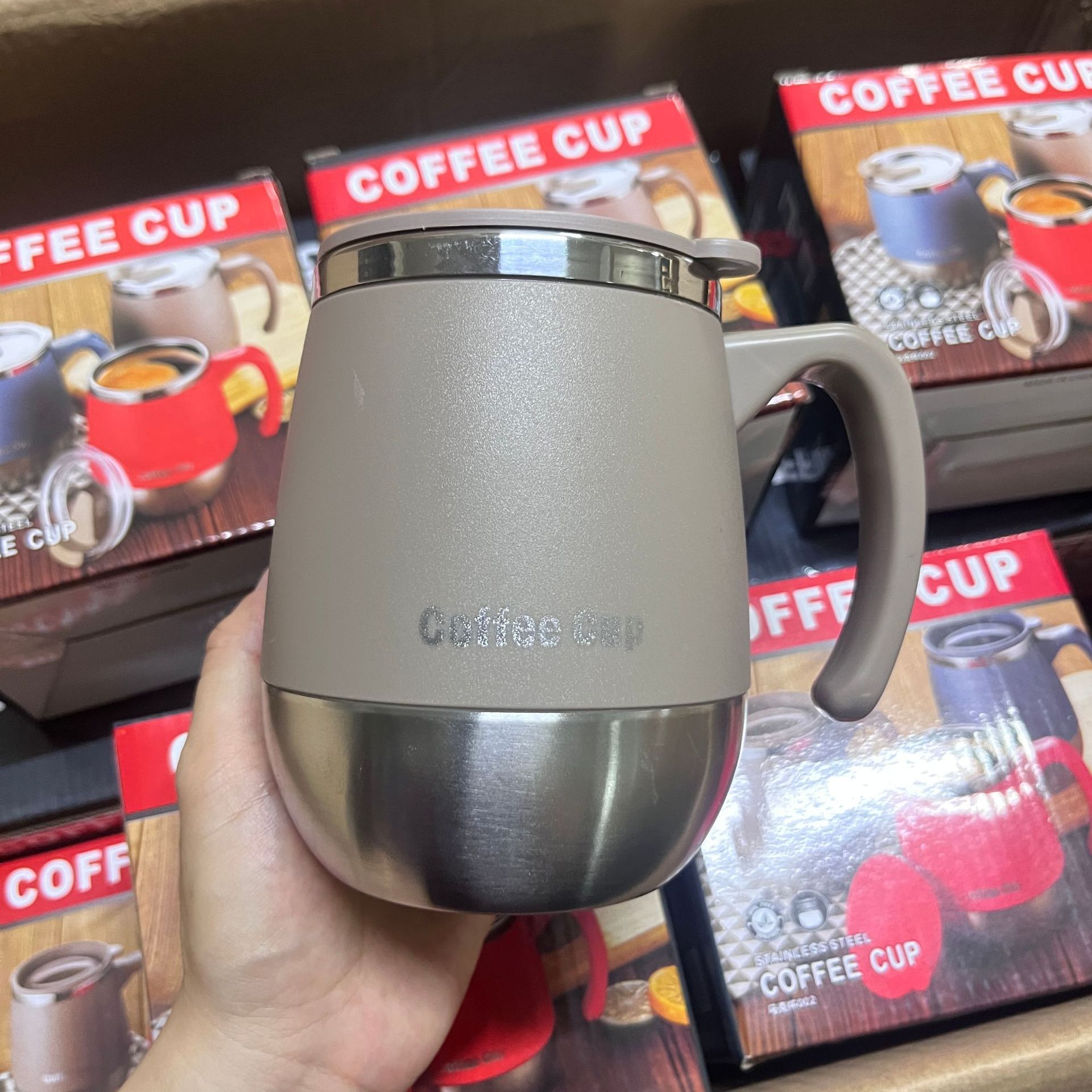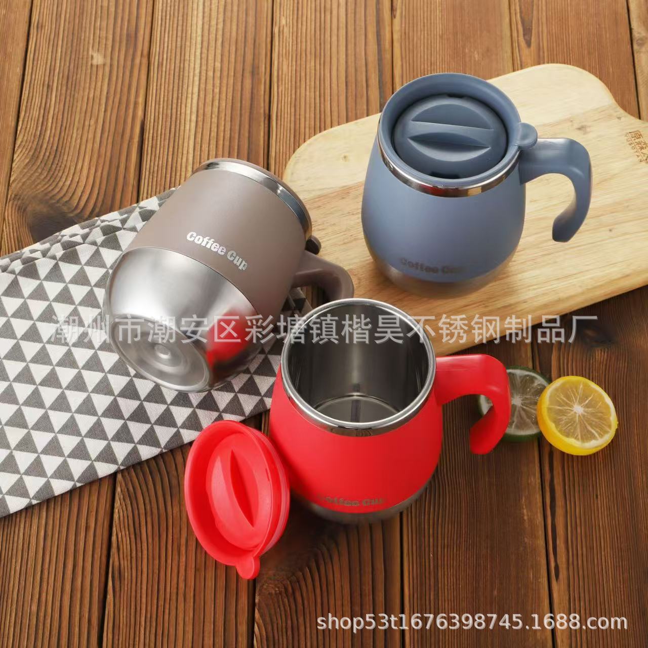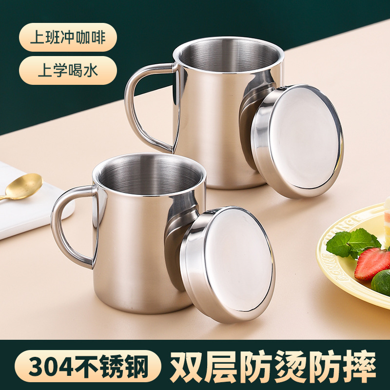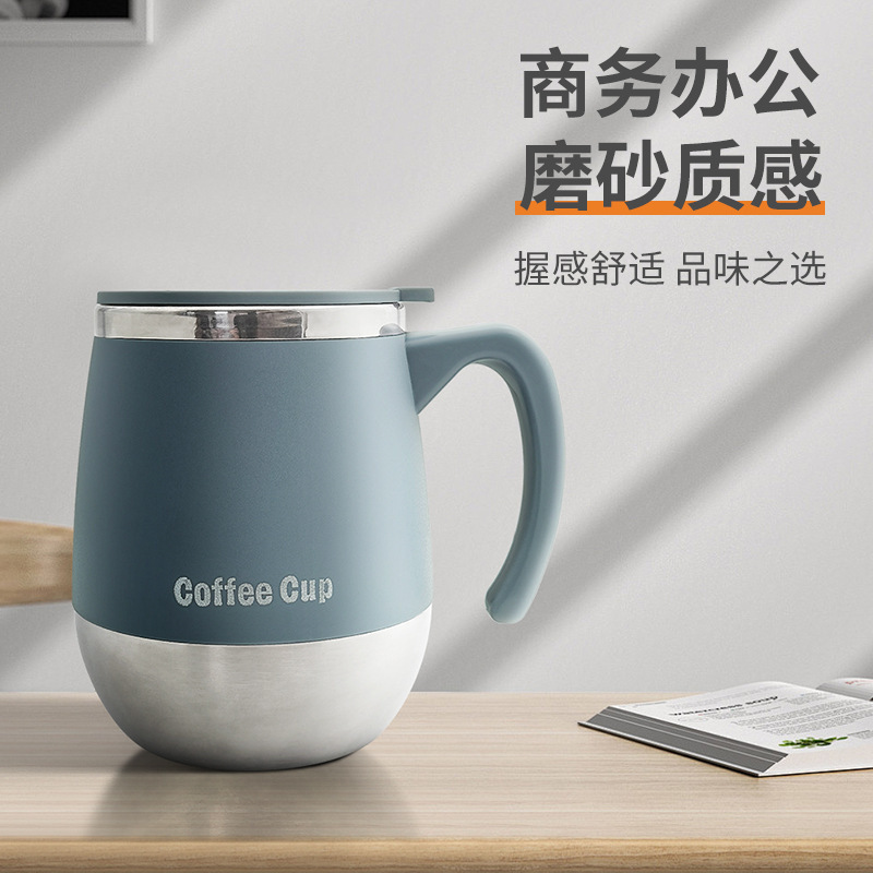ステンレスマグカップクロスボーダー専用コーヒーカップオフィス二重断熱ハンドルカップ家庭用ティーカップ