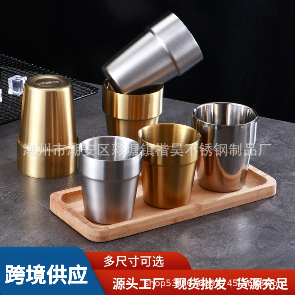 304不锈钢杯台阶杯双层杯隔热饮水杯口杯啤酒杯茶杯隔热双层杯