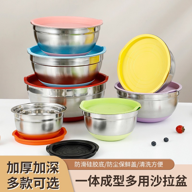 05 厚い食品グレードのステンレス鋼のカラフルなシリコン底卵泡立て器サラダボウルと洗面器家庭用調理ボウルセット