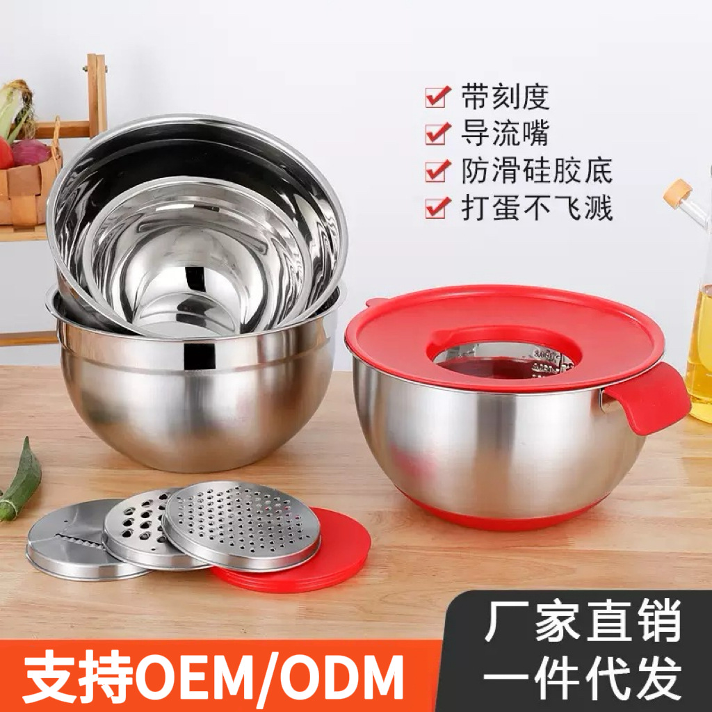 クロスボーダーヨーロピアンスタイルシリコン蓋滑り止めサラダボウル厚く高めハンドル付き傾斜口卵ボウル調味料ボウル