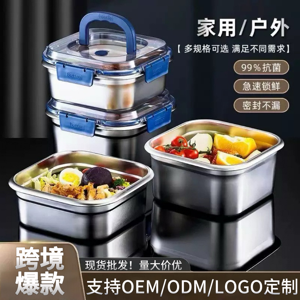 国境を越えた厚手のステンレス製携帯用鮮度保持ボックス、家庭用密封保存ボックス、収納ボックス、弁当箱、冷蔵庫保温ボックス