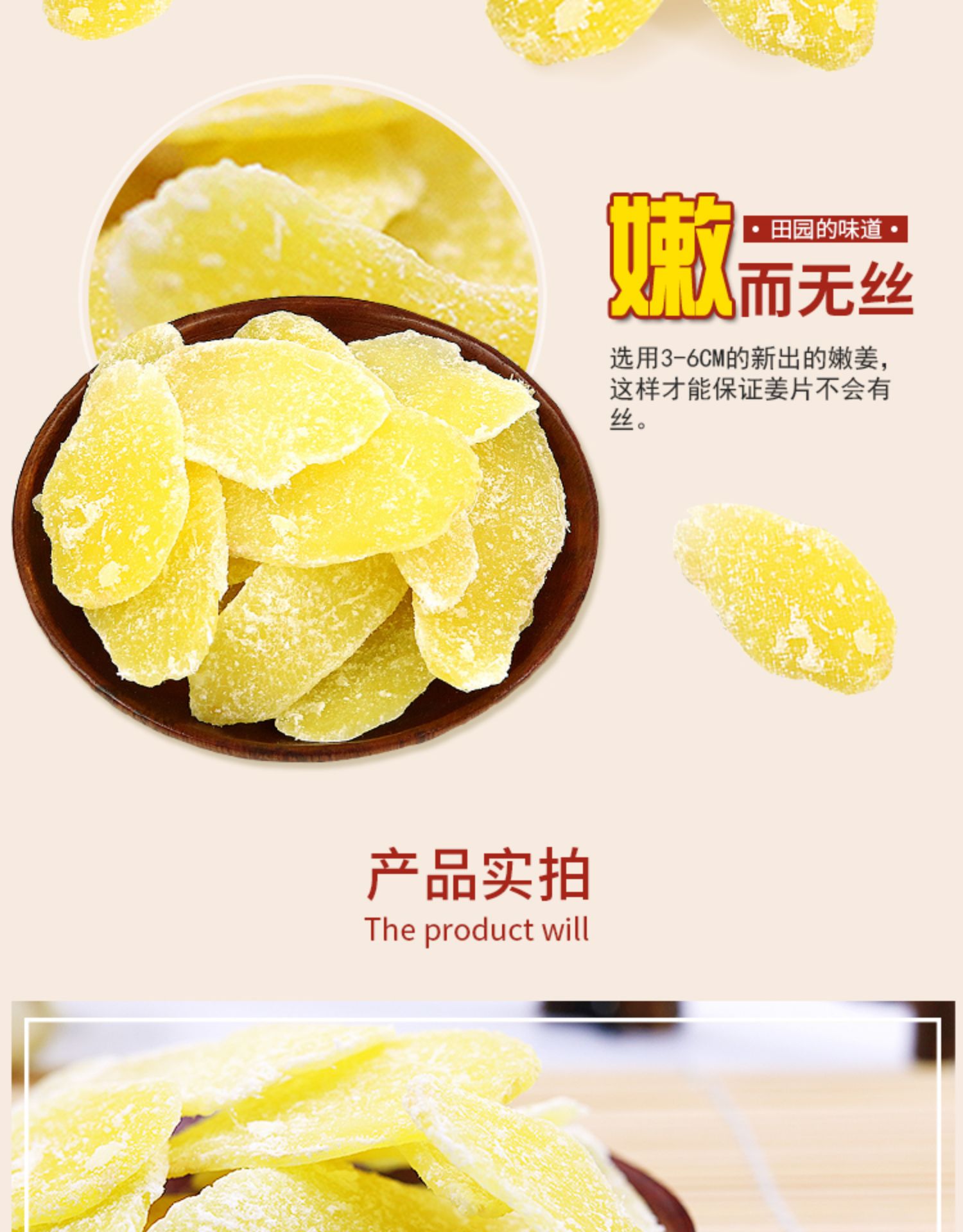 白砂糖生姜スライス沂蒙純粋な手作り古代の本物の無添加砂糖生姜スライスすぐに食べられる白砂糖生姜スライス