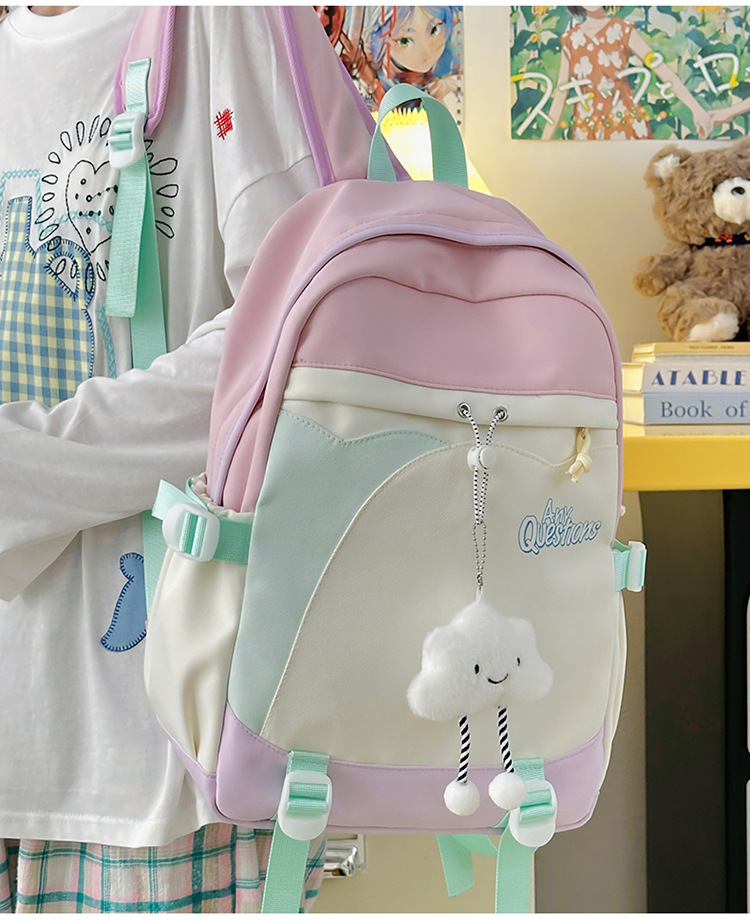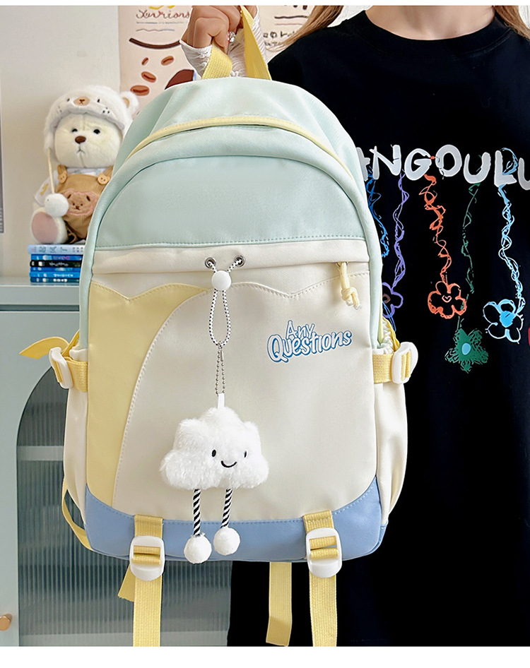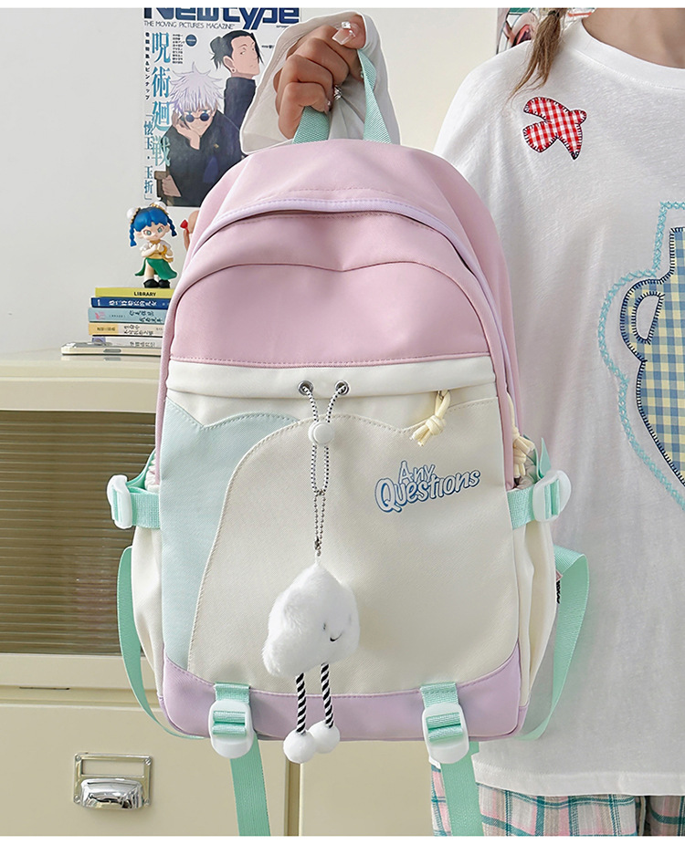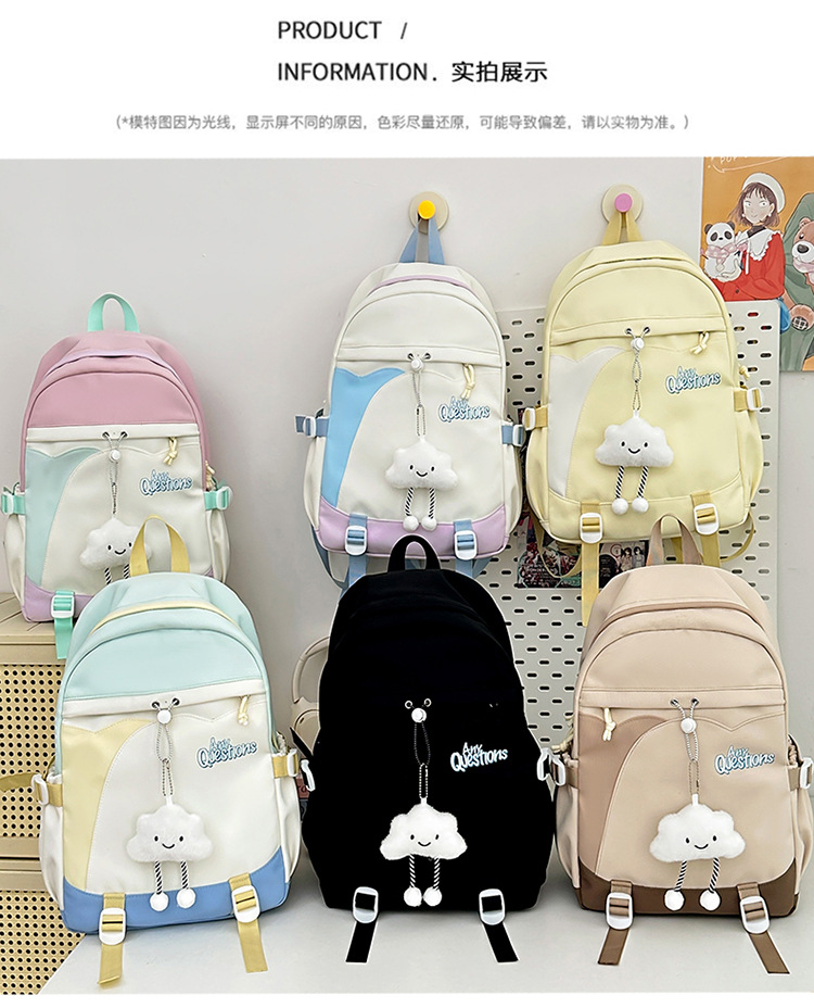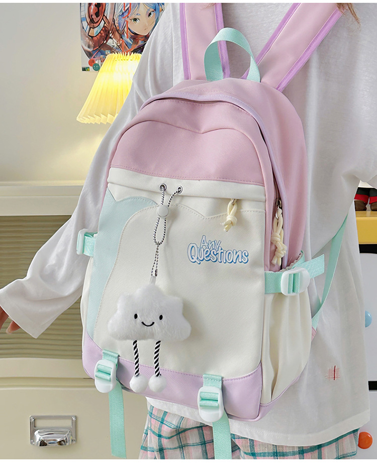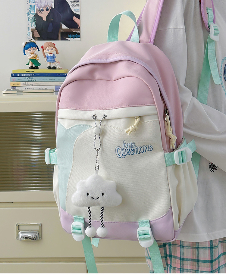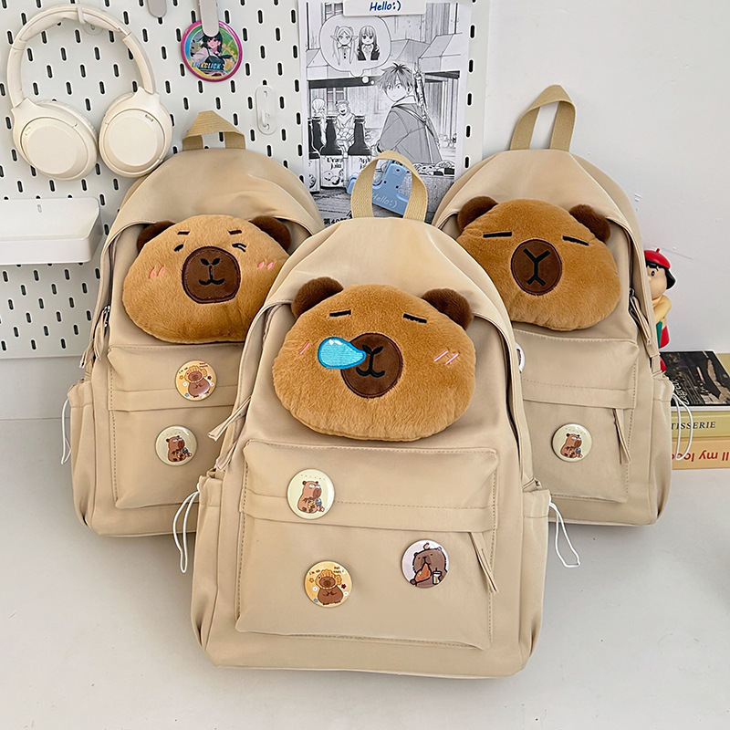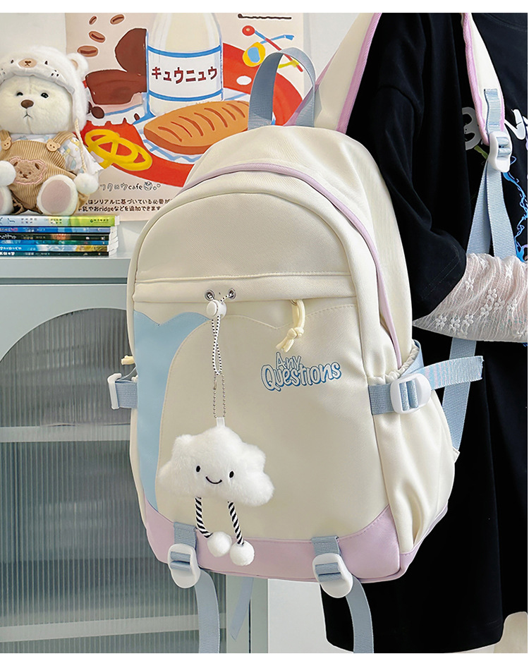 かわいい女の子ぬいぐるみスクールバッグ中学生バックパック女性の新しい大容量通勤シンプルな漫画キャンパスバックパック