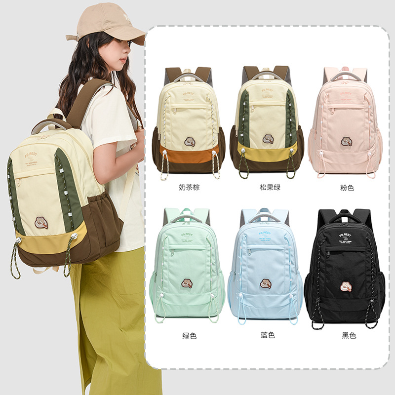 シンプルな韓国風のコントラストカラーの新しいスクールバッグ、軽量旅行カジュアルバックパック、高価値、汚れにくい、大容量バックパック