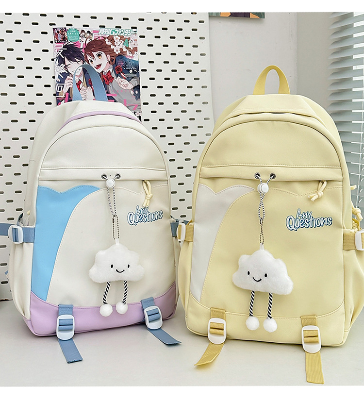かわいいぬいぐるみスクールバッグ女子中学生漫画キャンパスダブルバックパック新しい大容量通勤シンプルなバックパック
