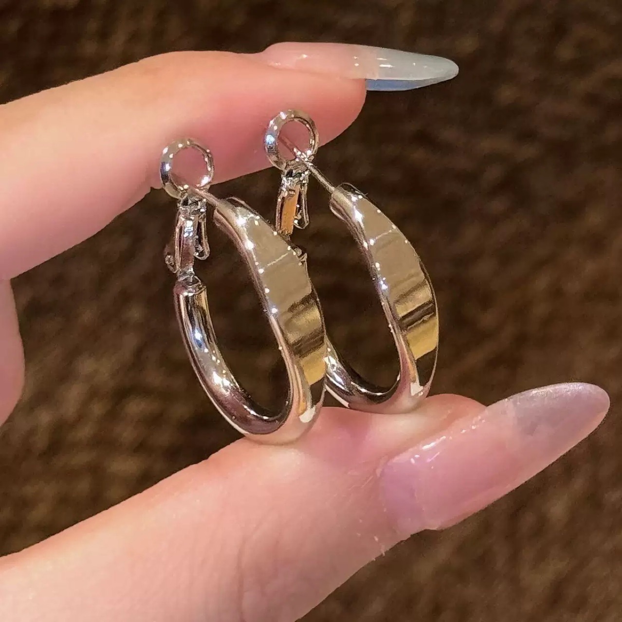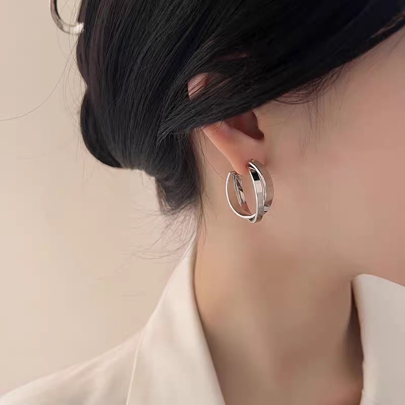 S925银针欧美夸张素圈耳环女高级感轻奢百搭简约气质耳圈耳饰批发