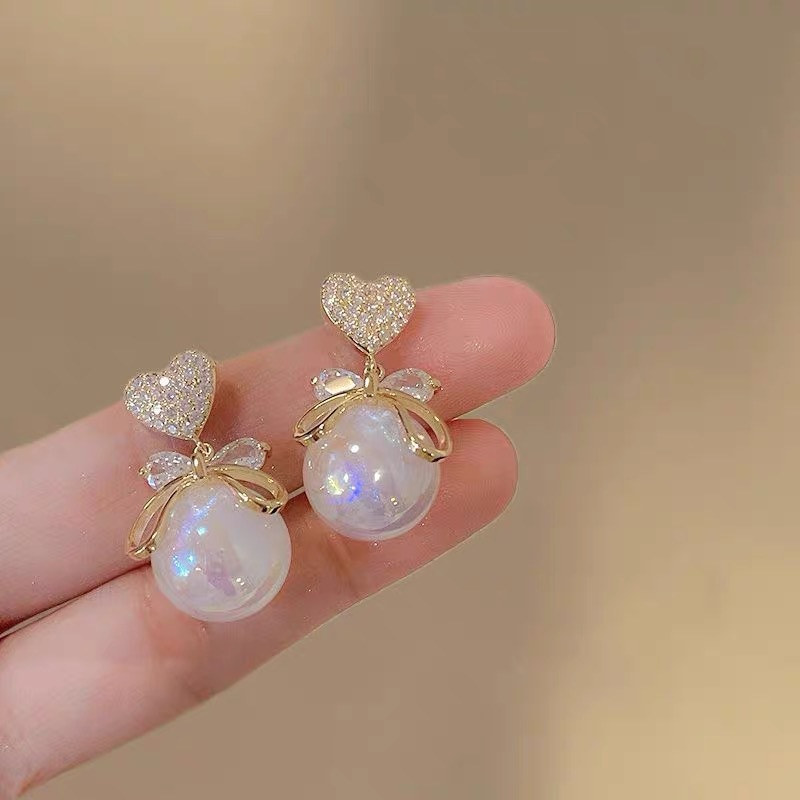 女性用の気質のリボンフルダイヤモンドイヤリング、多用途で絶妙でハイエンドのイヤリング、韓国の軽い高級ニッチイヤリング卸売