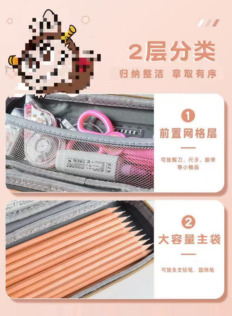 卸売カスタムネット人気のかわいい漫画学生ペンケース三層大容量ジッパー布製文房具箱鉛筆箱