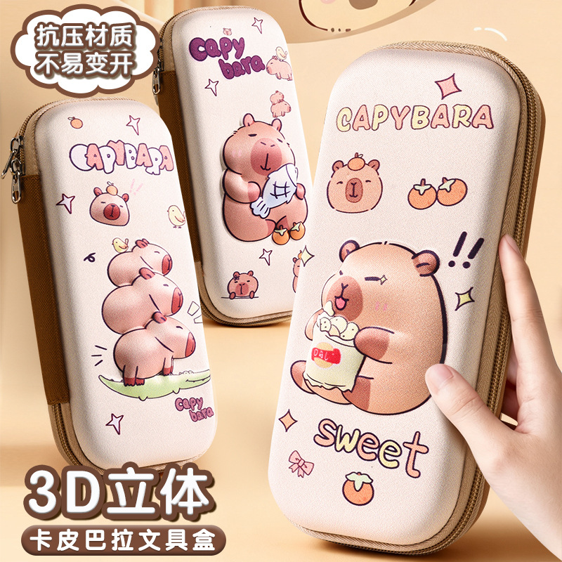 小学生卡皮巴拉3D立体文具盒儿童高级感铅笔盒男女EVA大容量收纳