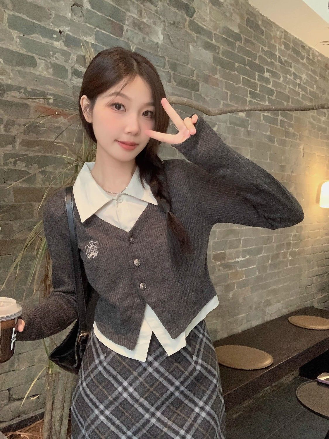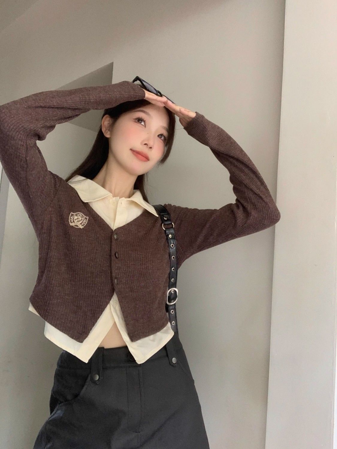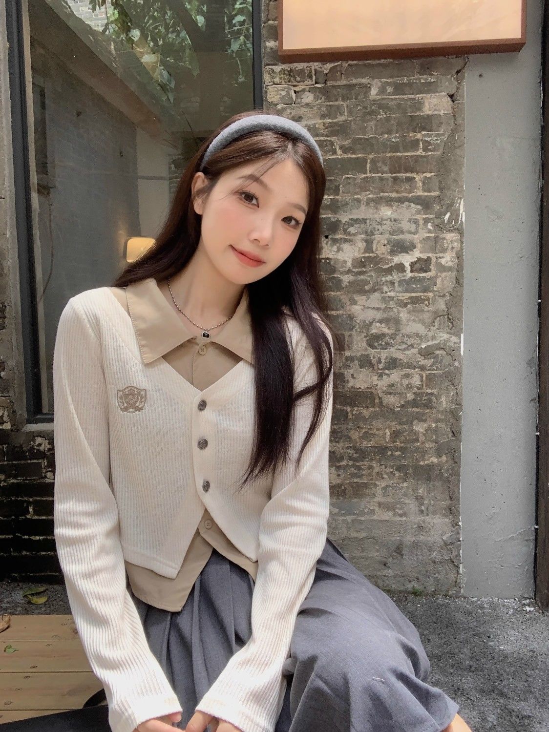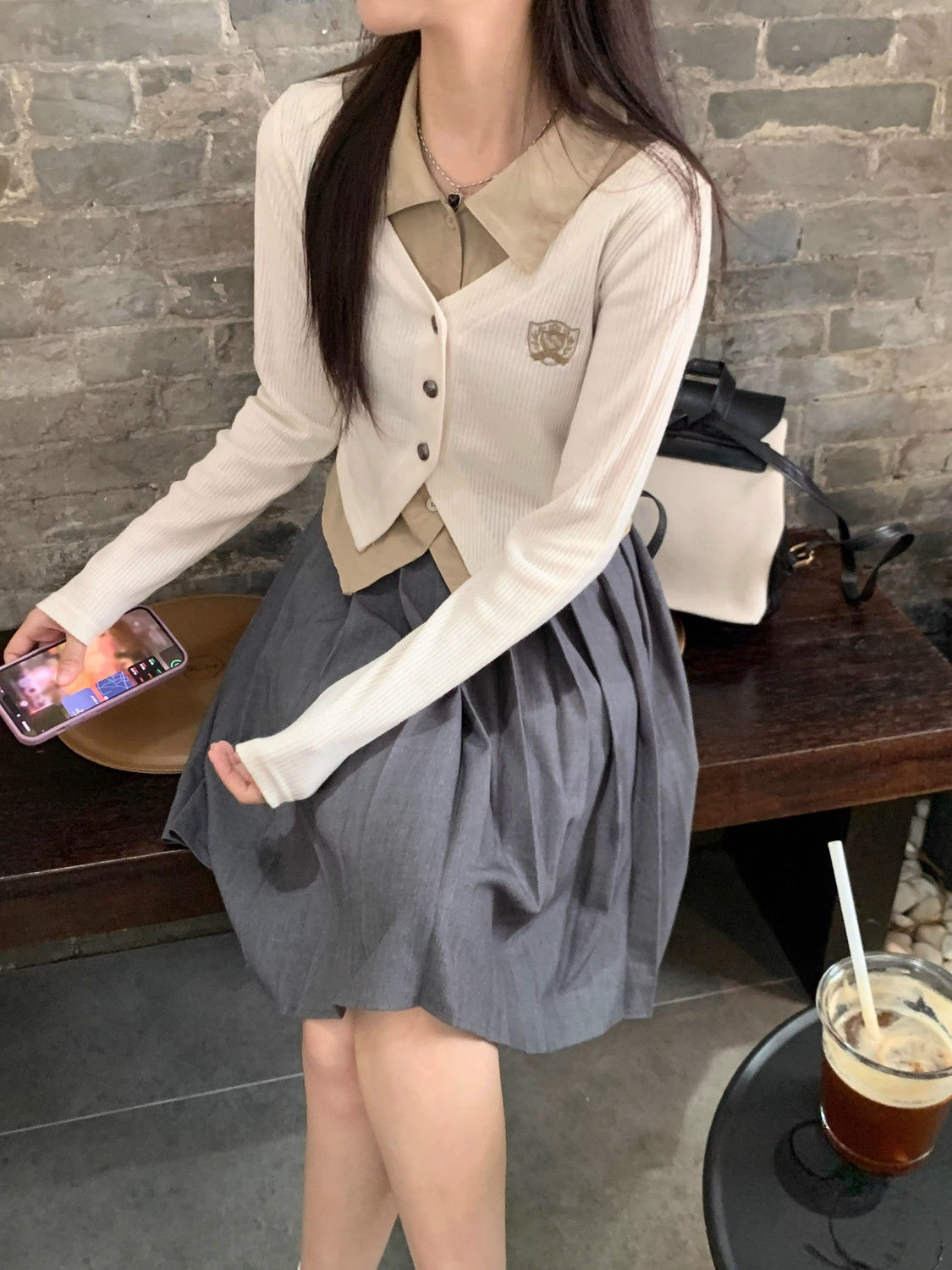 新しいツーピーススプライスニットシャツ2024春秋ニッチ新作カレッジスリムで肉感のある長袖トップス