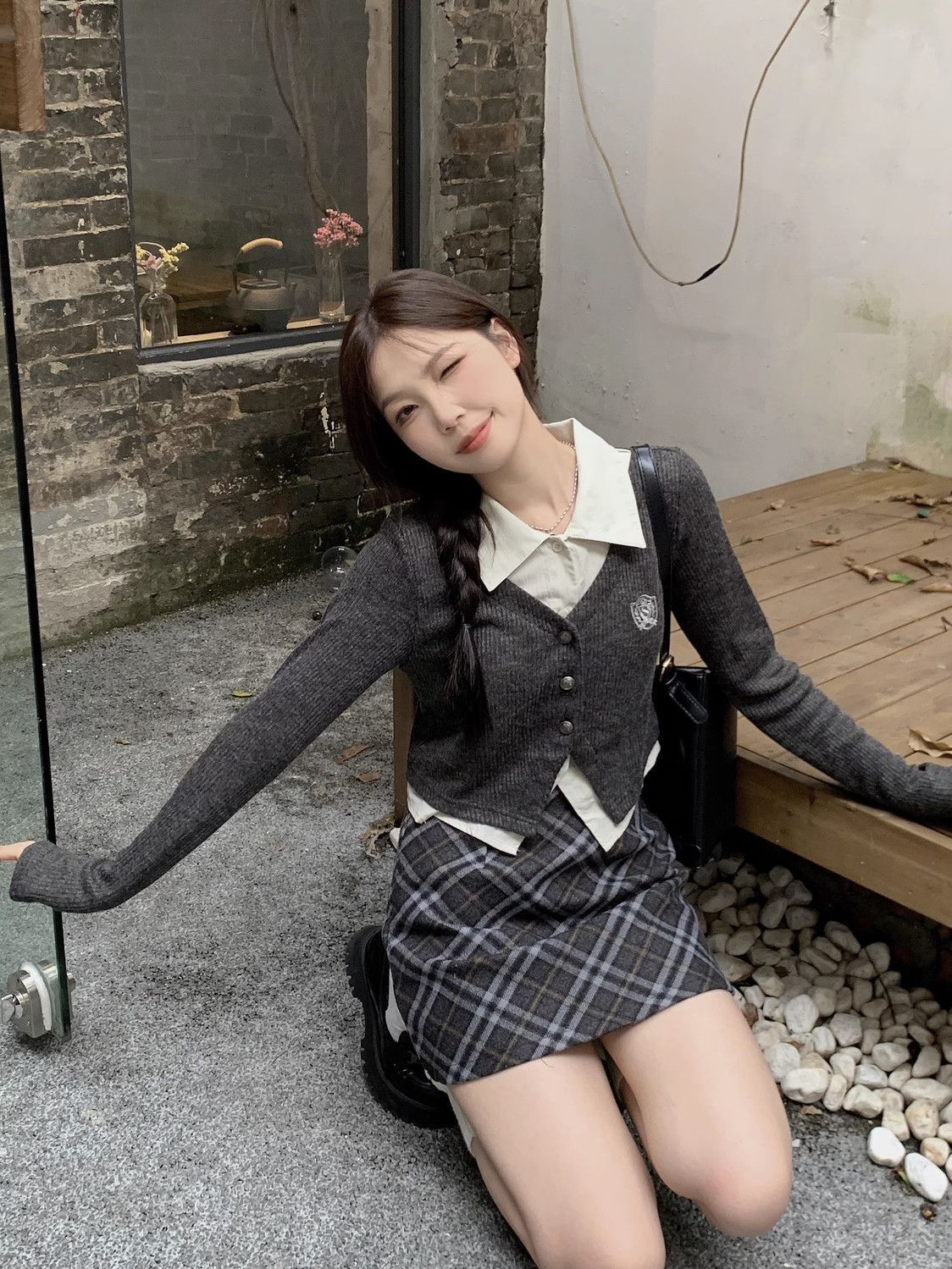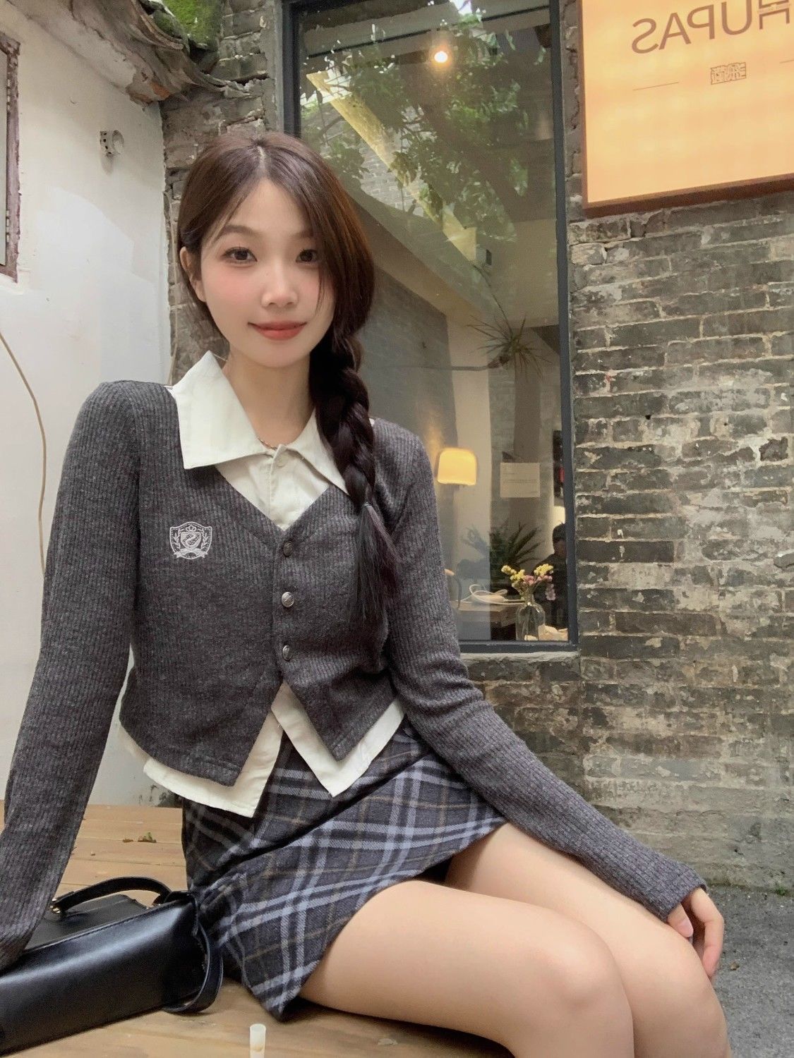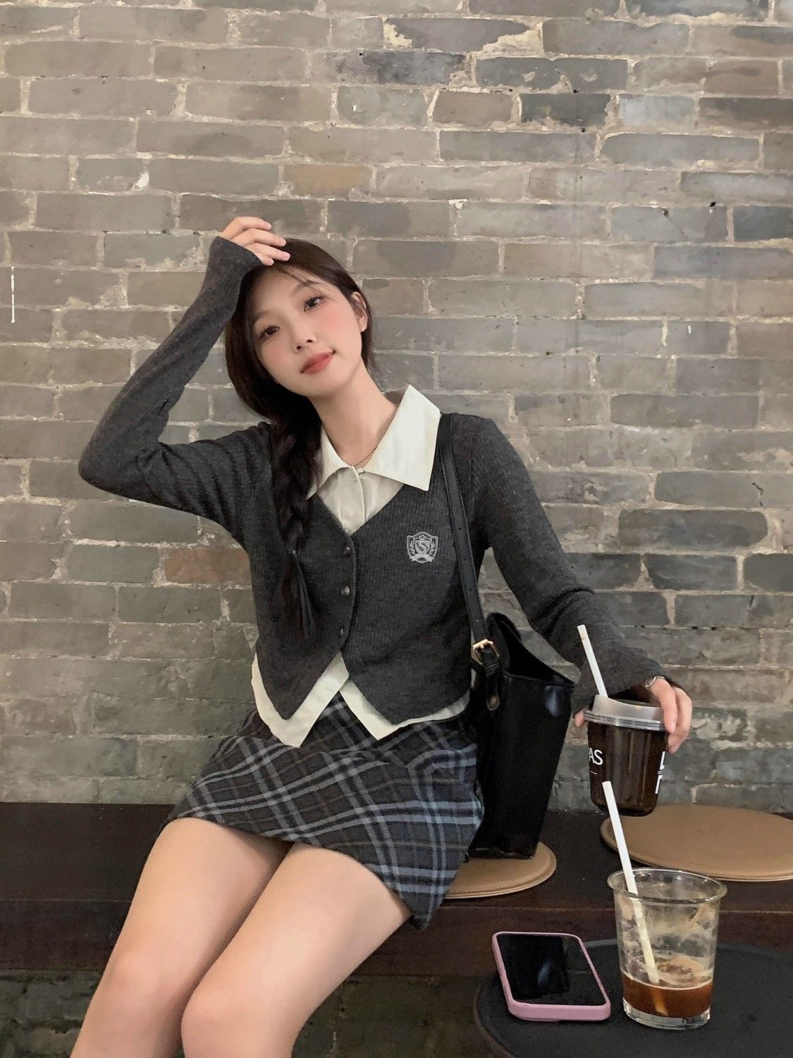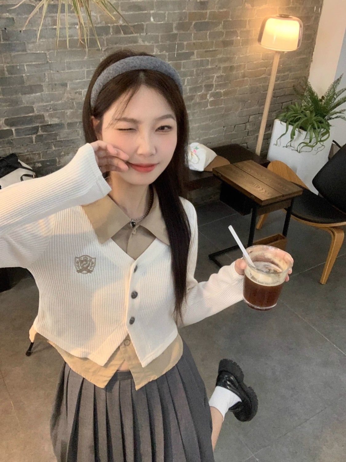 新しいツーピーススプライスニットシャツ2024春秋ニッチ新作カレッジスリムで肉感のある長袖トップス