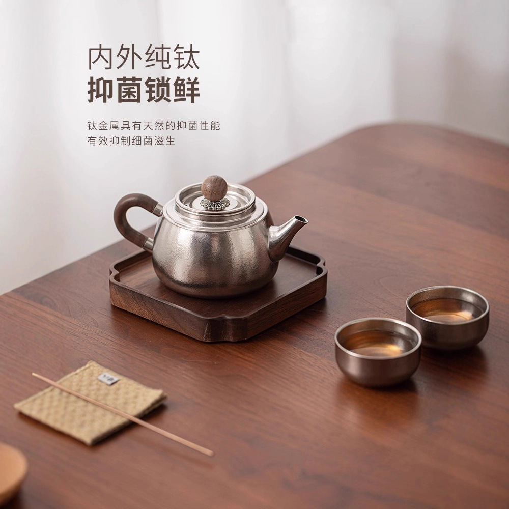鍋本体内外純チタン+蓋内外純チタン+無垢材蓋ボタン