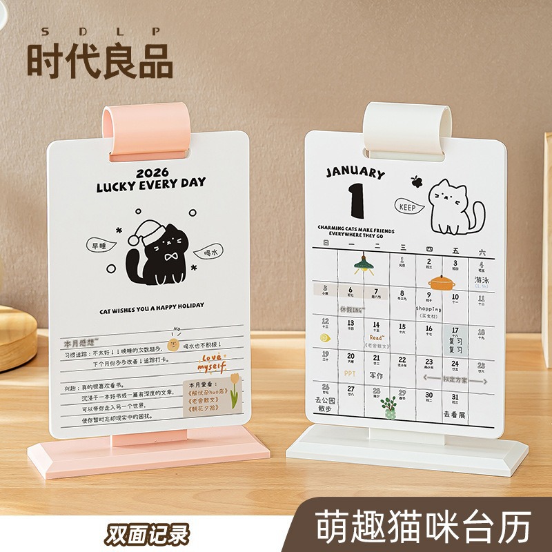かわいい猫文化創造計画卓上カレンダー 2026 年馬高価値学生漫画デスクトップチェックインカレンダー小さな装飾品