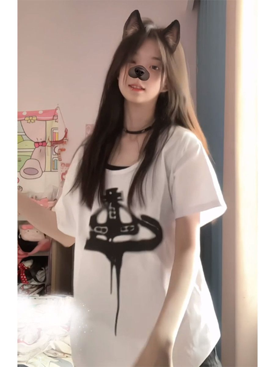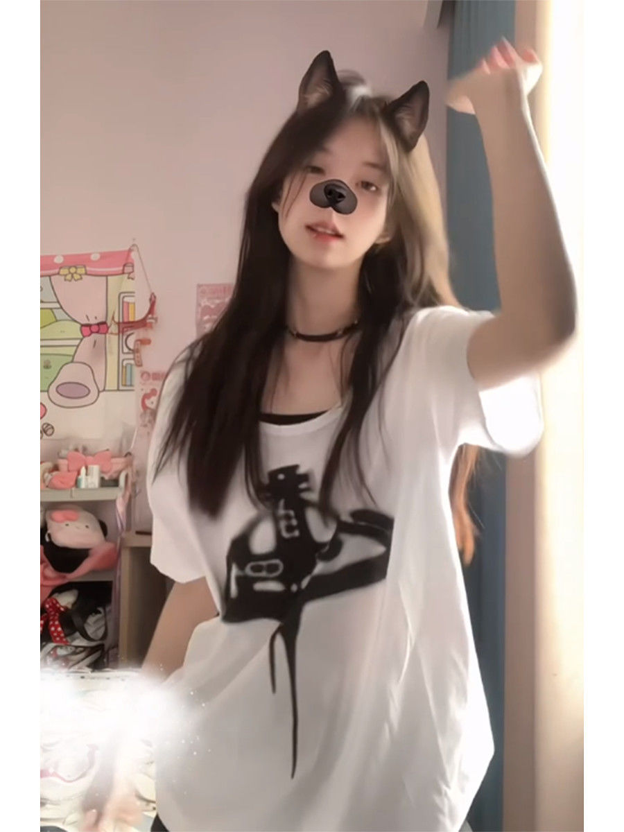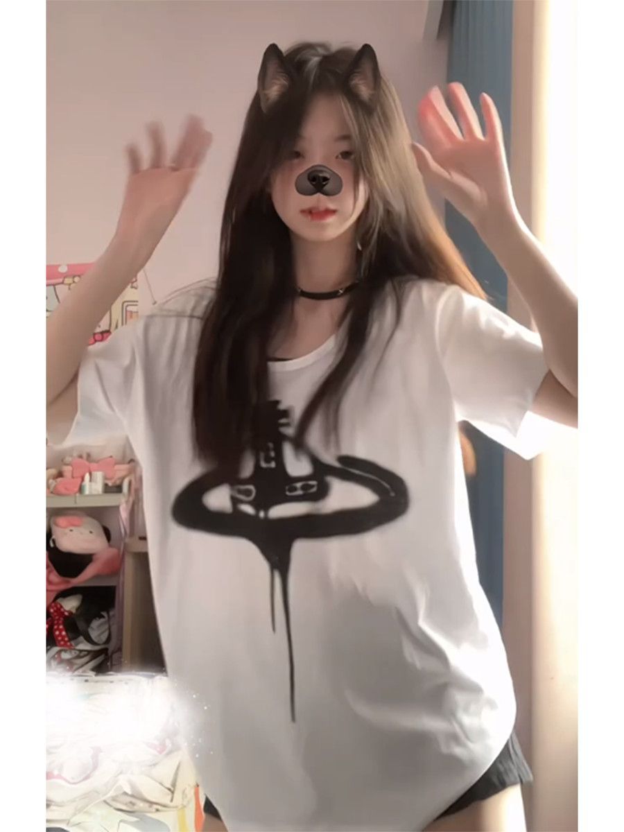 アメリカンレトロクリエイティブ漫画半袖Tシャツレディース夏ルーズオーバーサイズカレッジスタイルカジュアル万能トップ