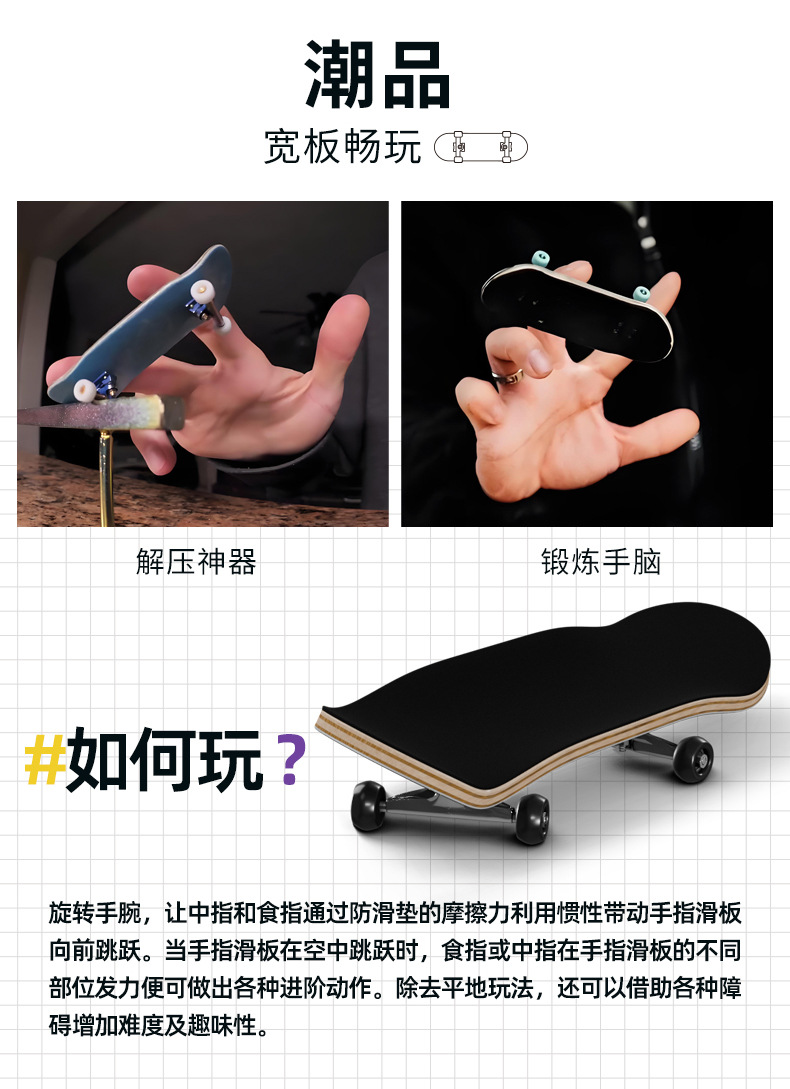 跨境源头工厂手指滑板32mm枫木指尖专业通用手掌滑板车手工公路
