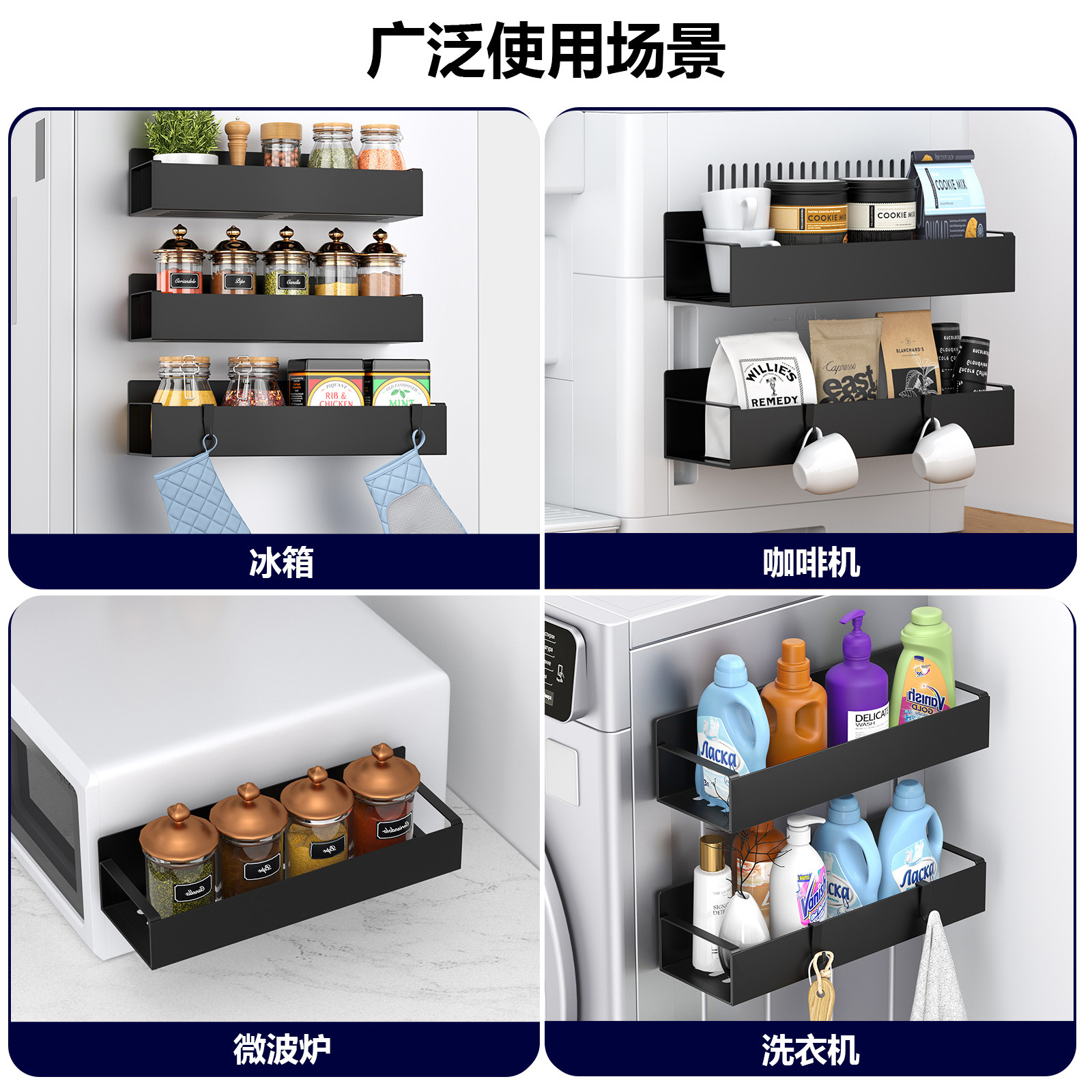跨境磁吸冰箱置物架 厨房用品置物架免打孔调料架 家用冰箱侧挂架