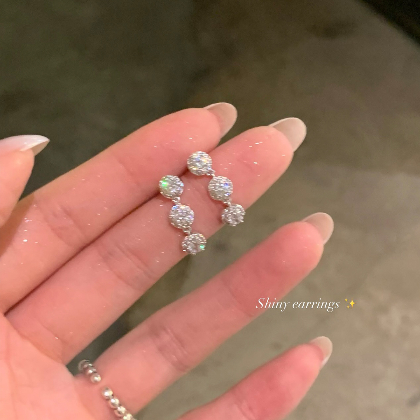 法式超闪锆石流苏耳环女轻奢高级感气质大气耳钉小众独特设计耳饰