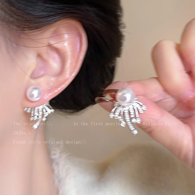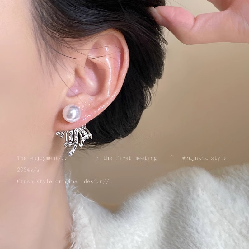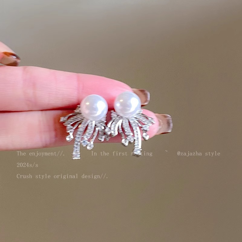 シルバー花火パールイヤリング女性ニッチユニークなデザインファッションイヤリングハイエンドエレガントな絶妙なクールイヤリング