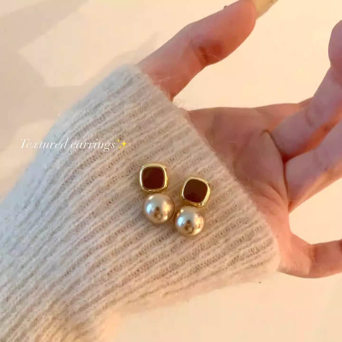咖色方糖滴油珍珠吊坠耳钉女轻奢高级感气质大气耳环独特漂亮耳饰