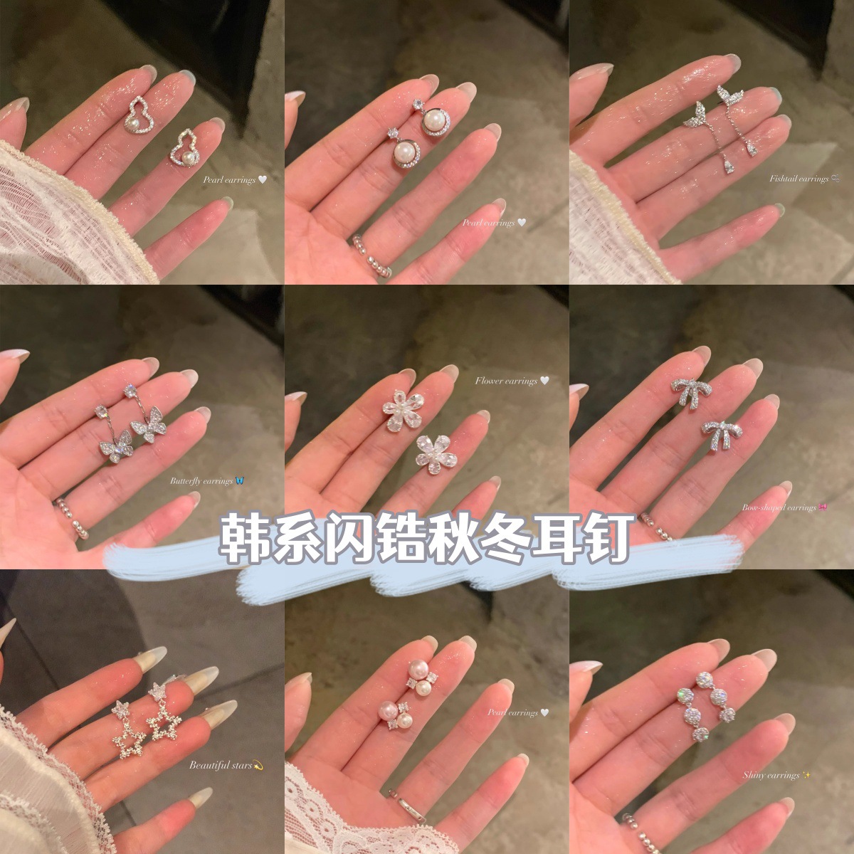 韩系热卖小巧闪锆珍珠蝴蝶耳钉2025年秋冬新款小众设计高级感耳钉