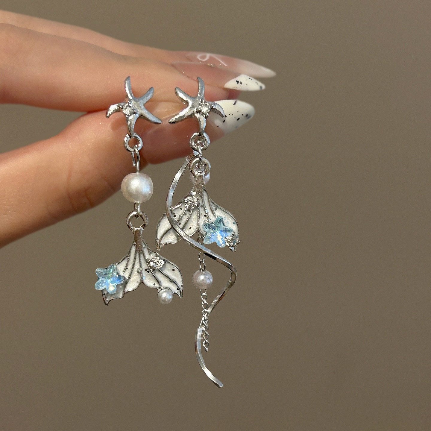海洋系列~夏日度假风海星鱼尾耳环显白温柔流苏耳钉小众高级耳饰