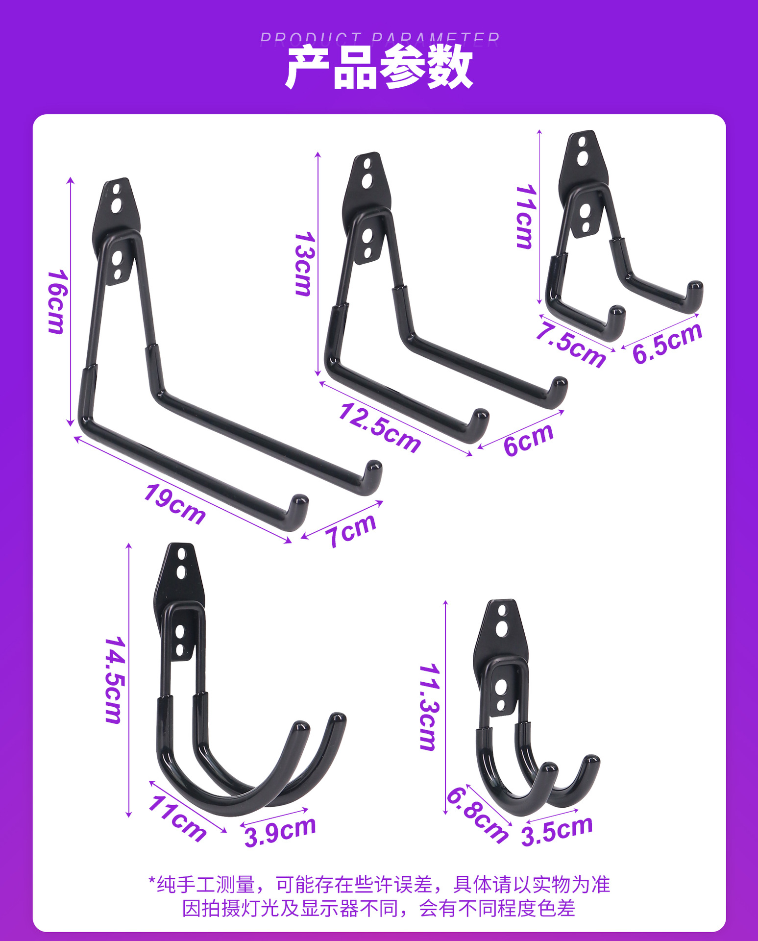 跨境仓库重型墙壁收纳金属车库挂钩 打孔铁艺承重自行车墙上挂钩