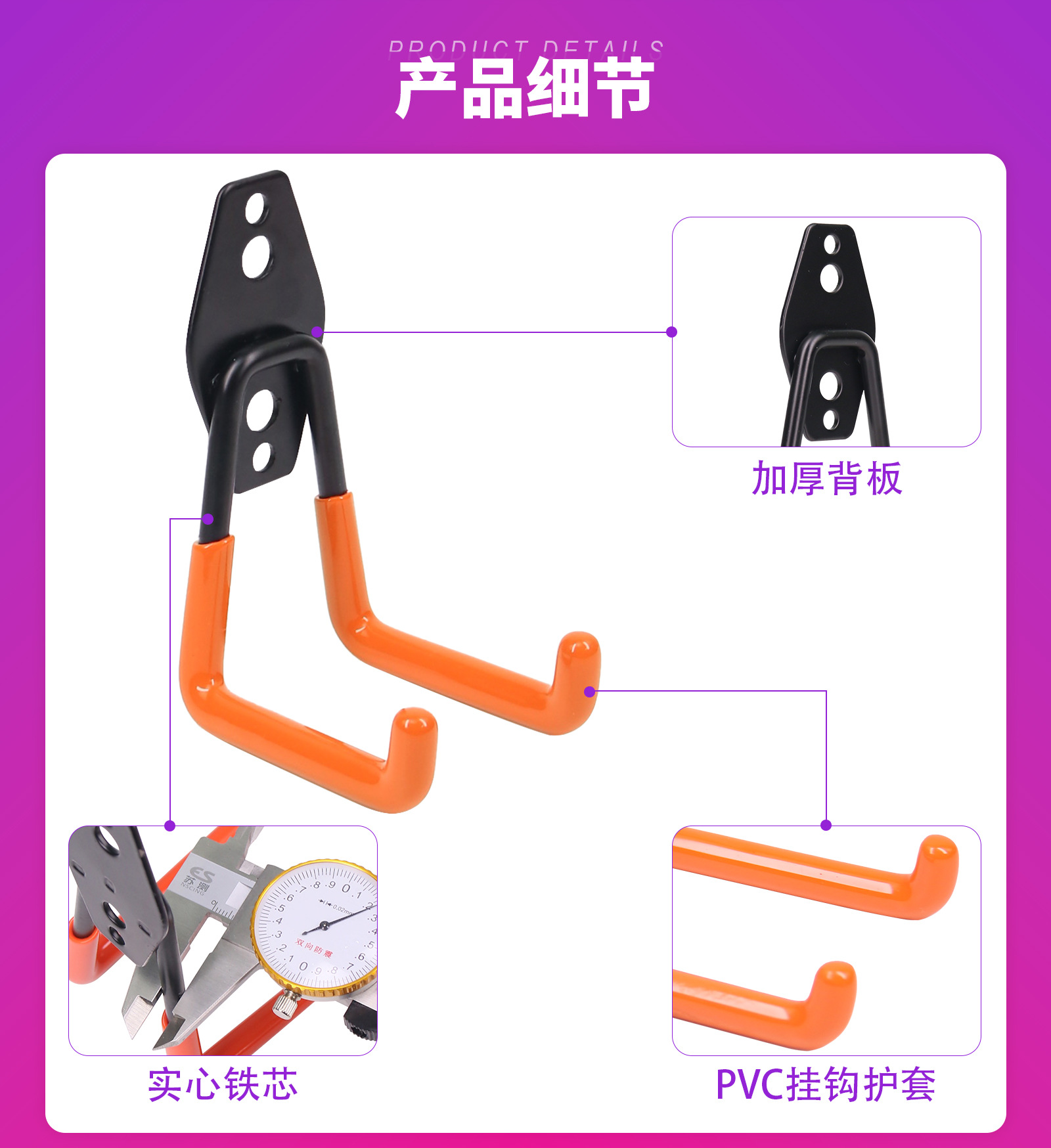 车库重型挂钩打孔包胶储物重物工具园艺挂钩 车库铁创意金属挂钩