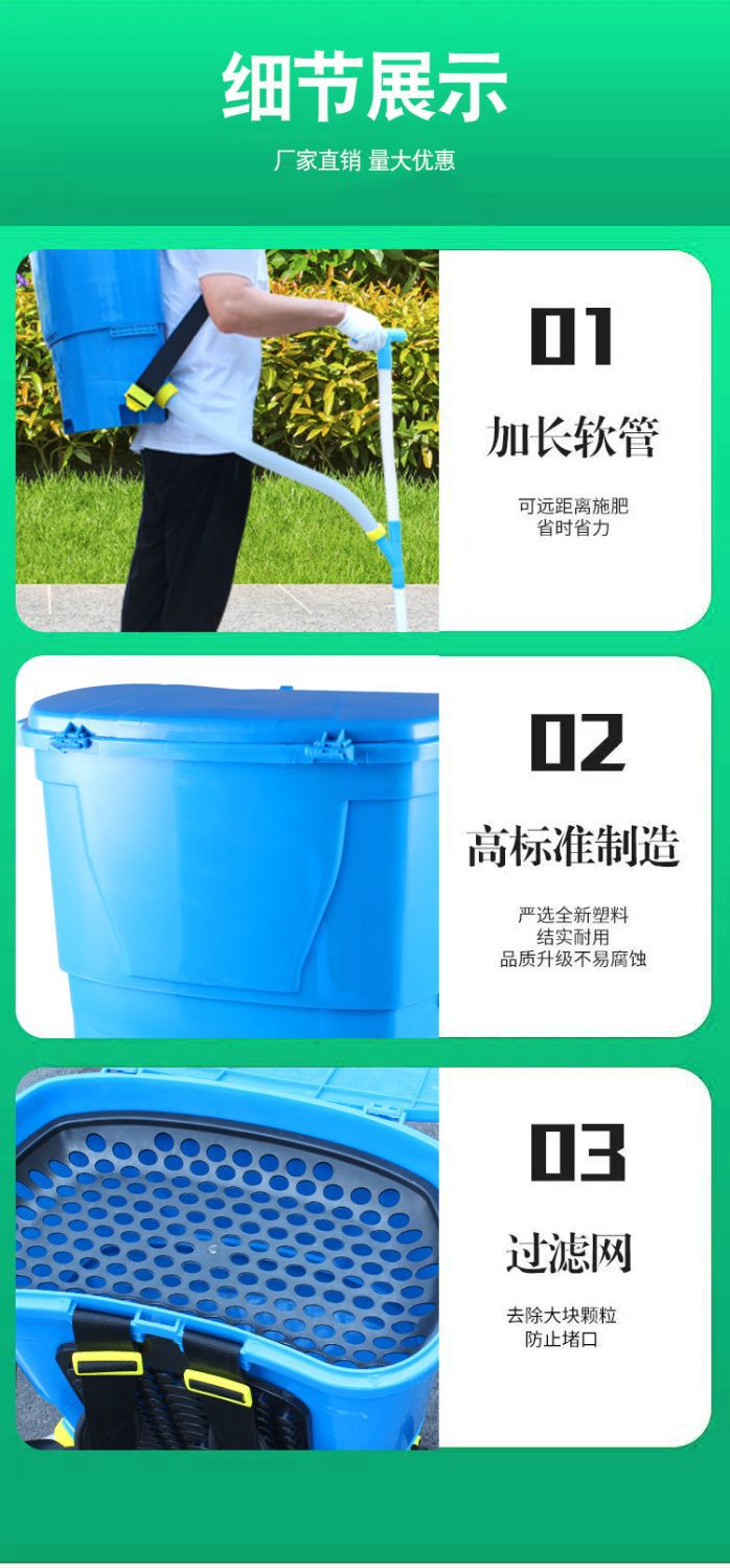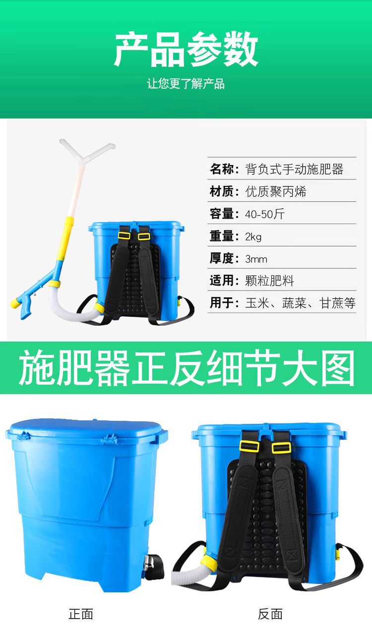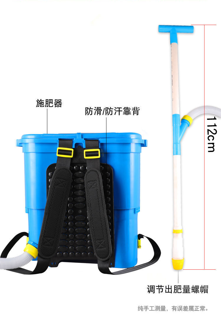 人工肩掛けポータブル肥料散布ツール、背負い式果物と野菜の種子と飼料の施肥、肥料プラスチックバレルの厚み