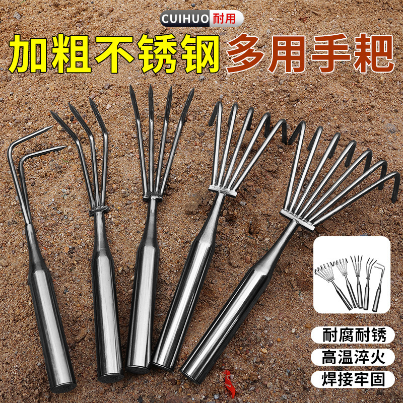 ステンレス製の小さな熊手、園芸盆栽、土ほぐし、海の宝物、ベランダ鉢植えの植え替え、家庭用花の植え付けツール、手熊手