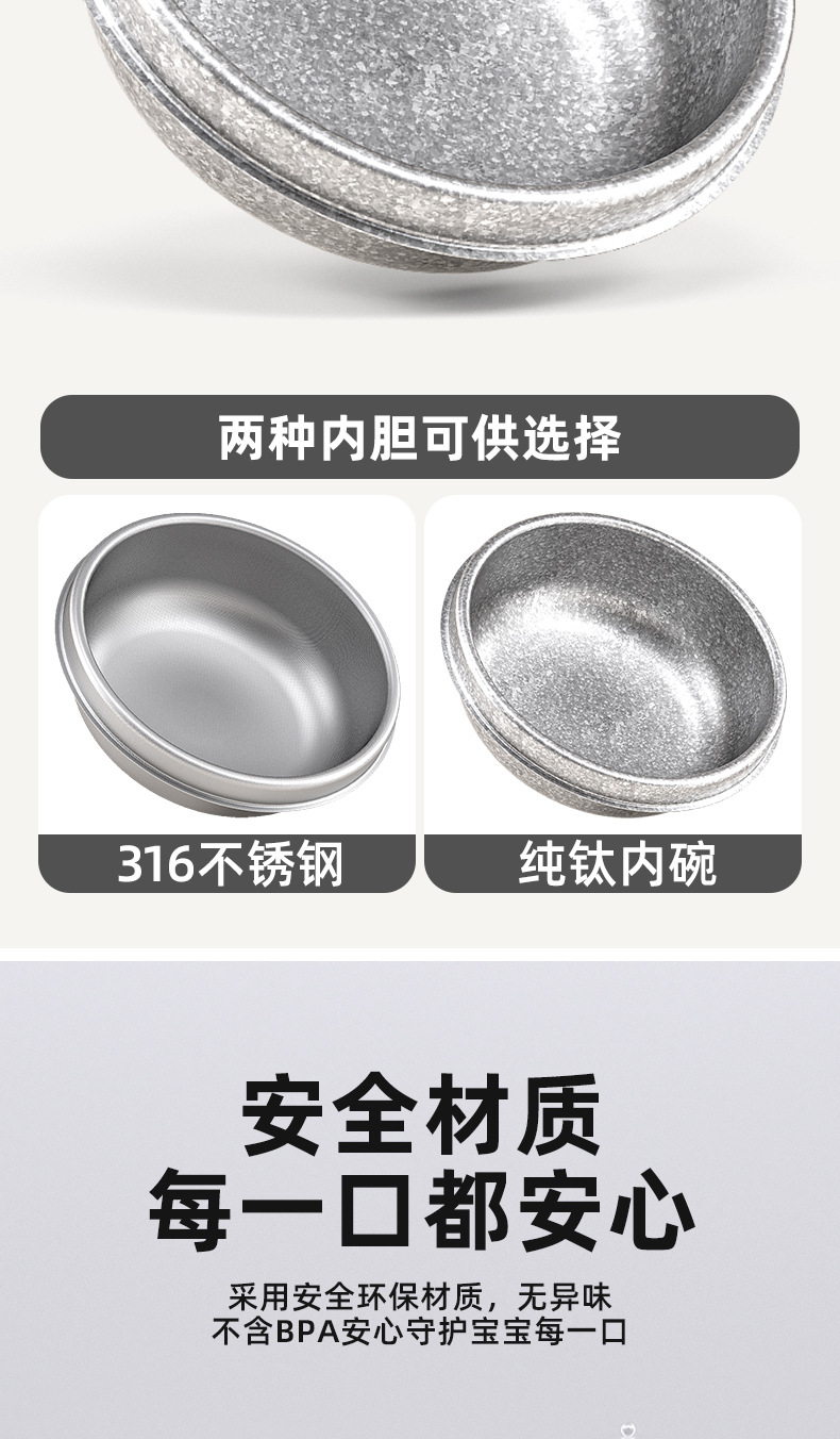 纯钛儿童注水保温碗家用宝宝感温屏显碗婴幼儿学吃饭碗婴儿辅食碗