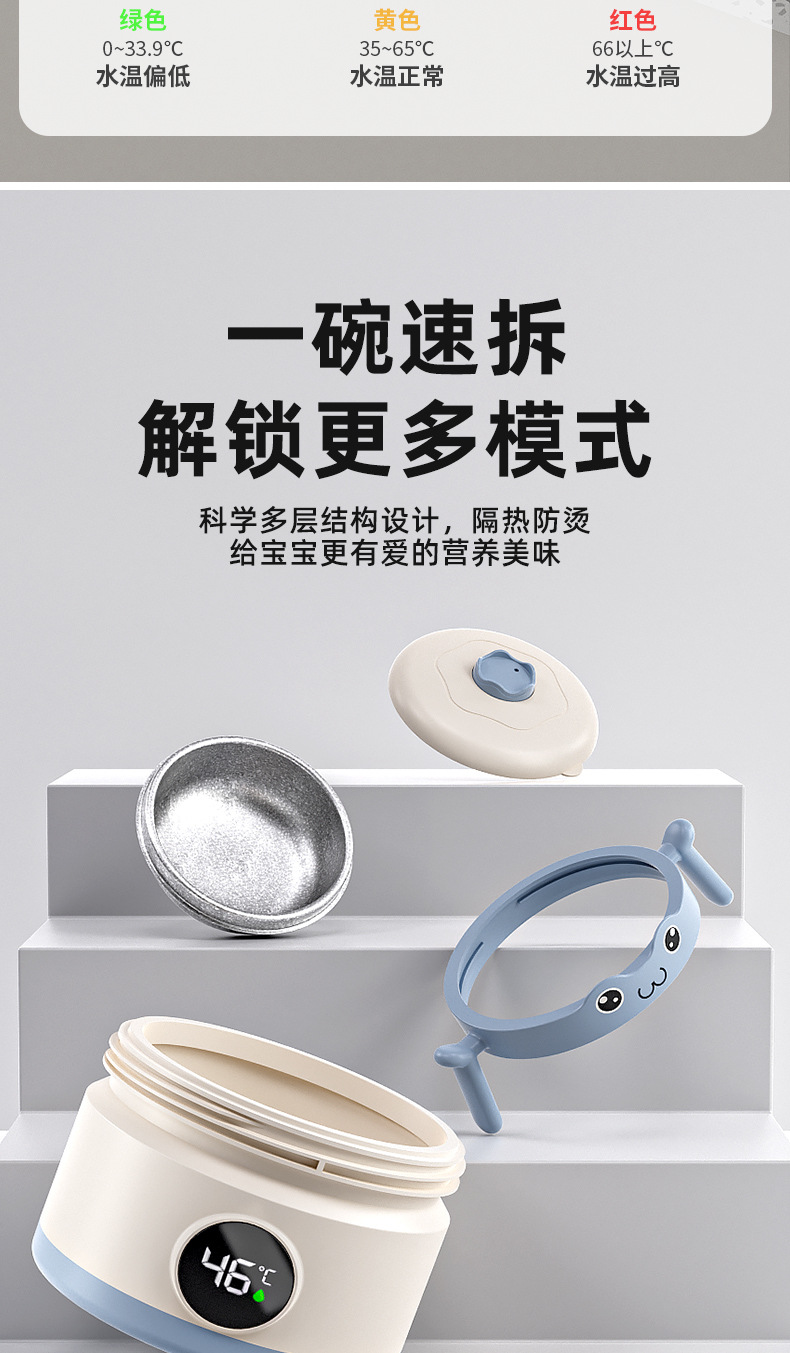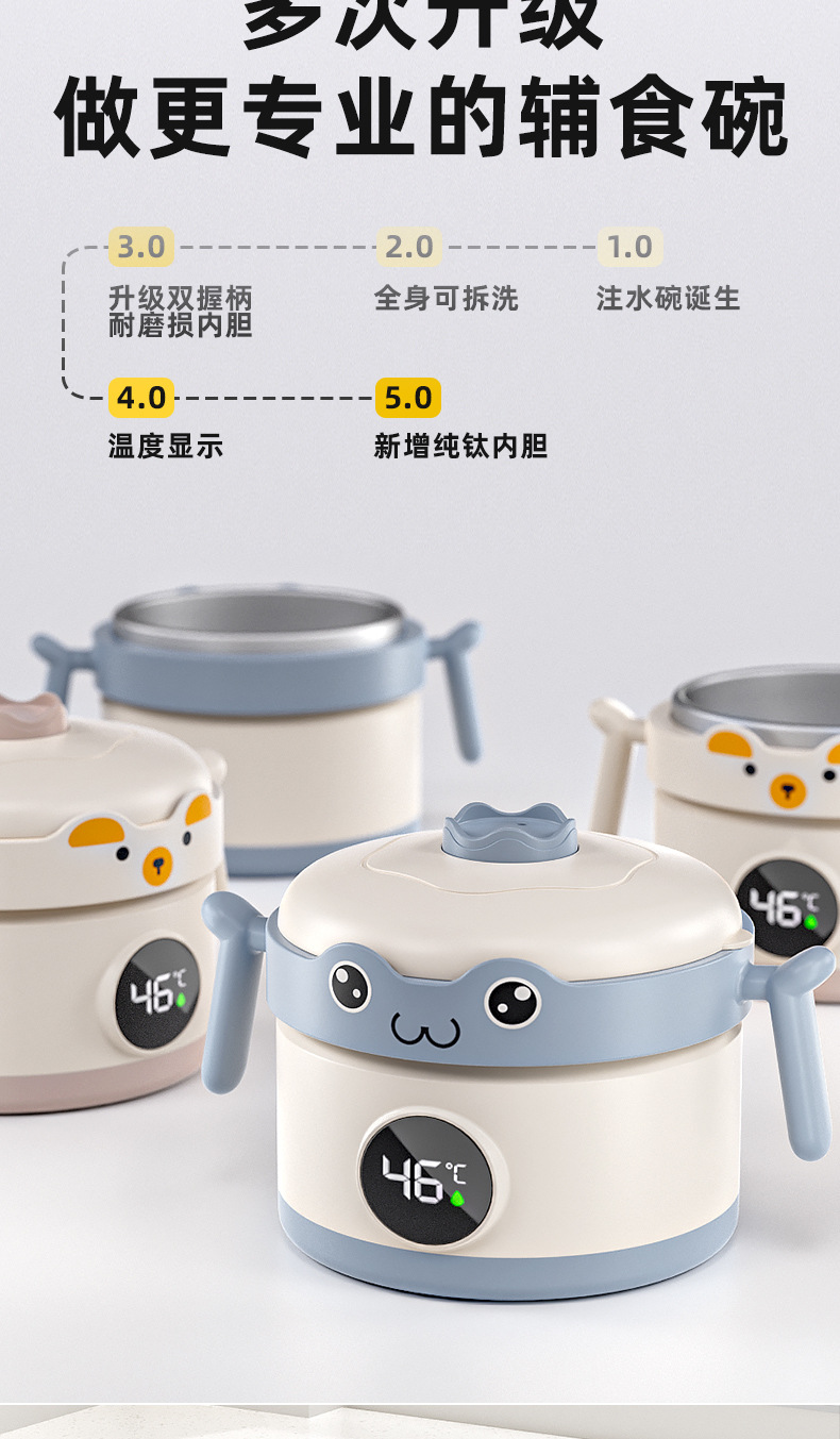 宝宝注水保温碗婴儿辅食餐盘保温智能数显儿童饭盒