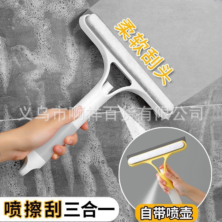 多功能加液玻璃刮水器可擦可刮带喷头三合一家用清洁玻璃镜子双面