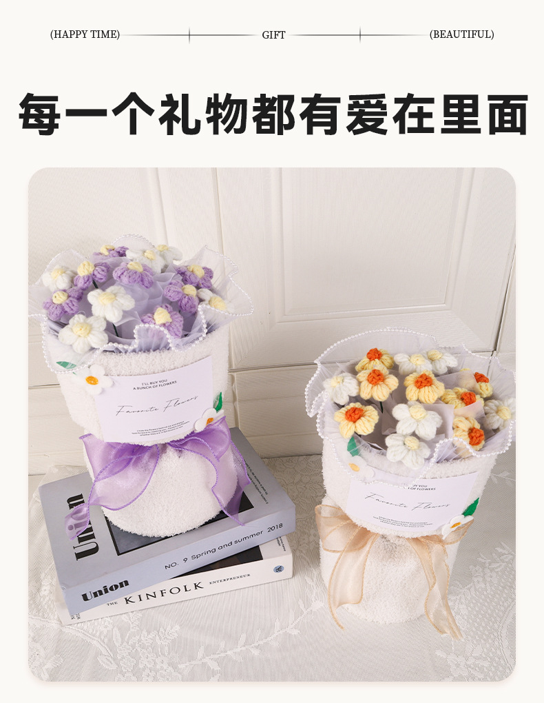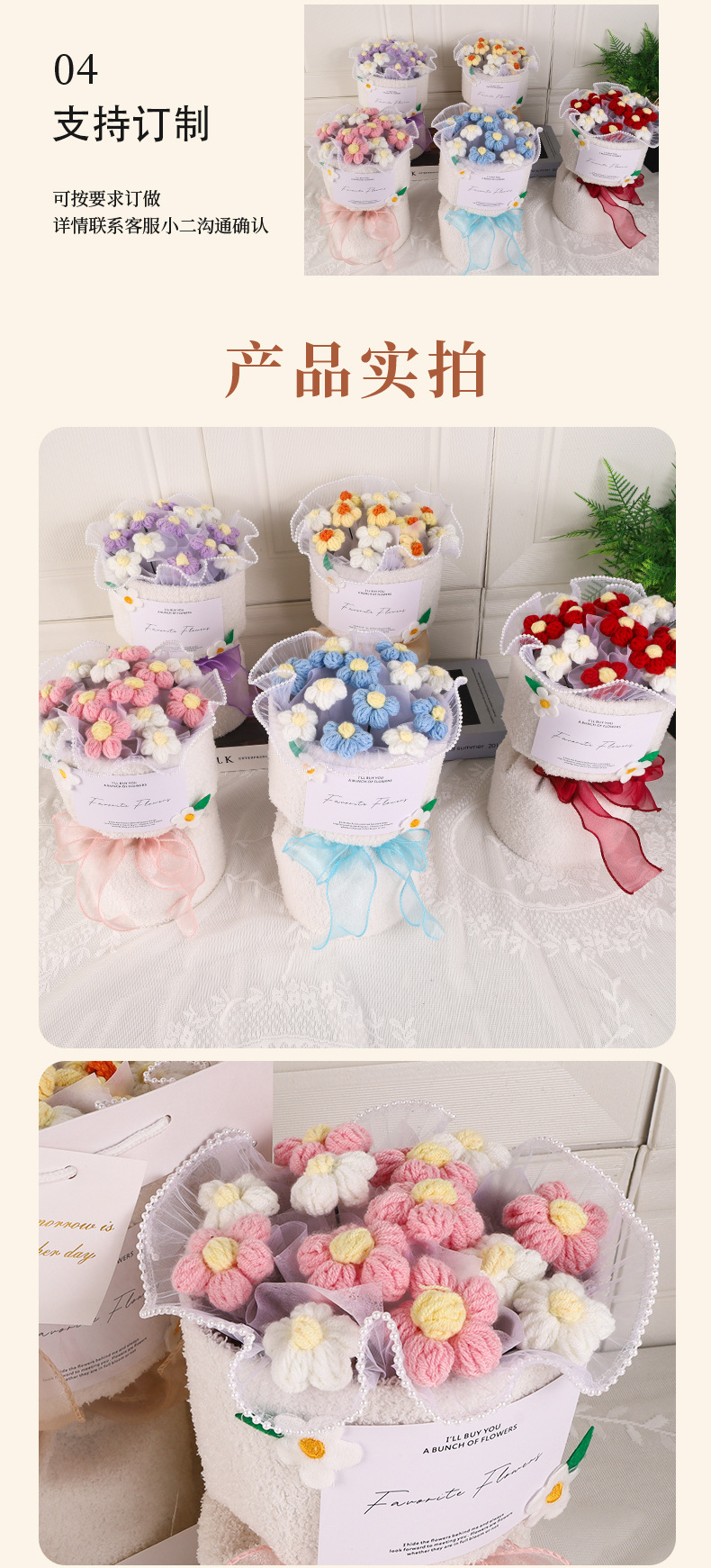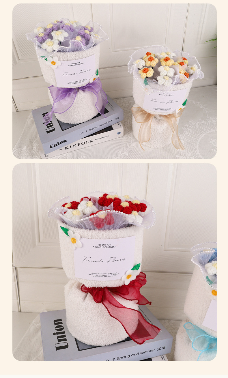 クリエイティブでかわいいウールニットブーケ、フレグランスニッチな完成花、友人、ガールフレンド、親友への誕生日プレゼントとして