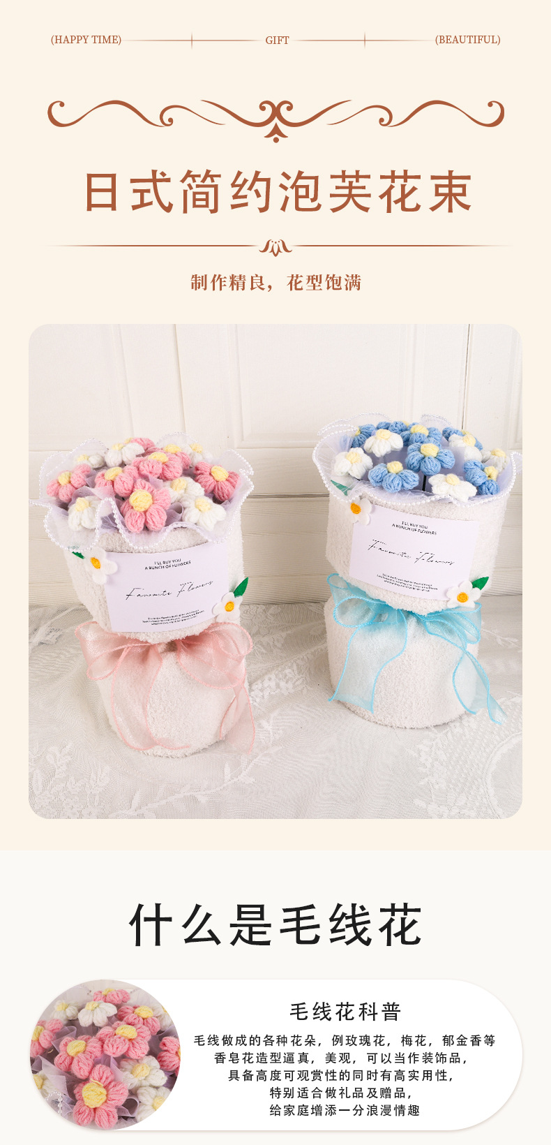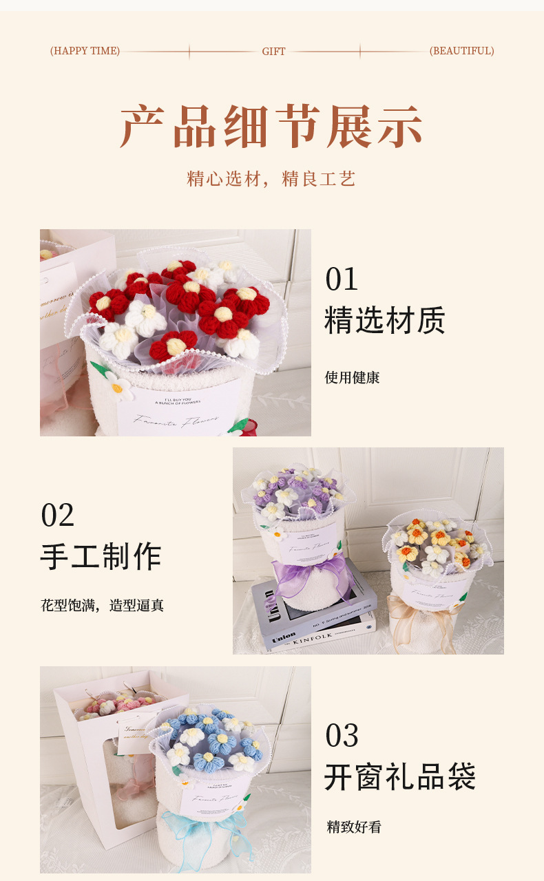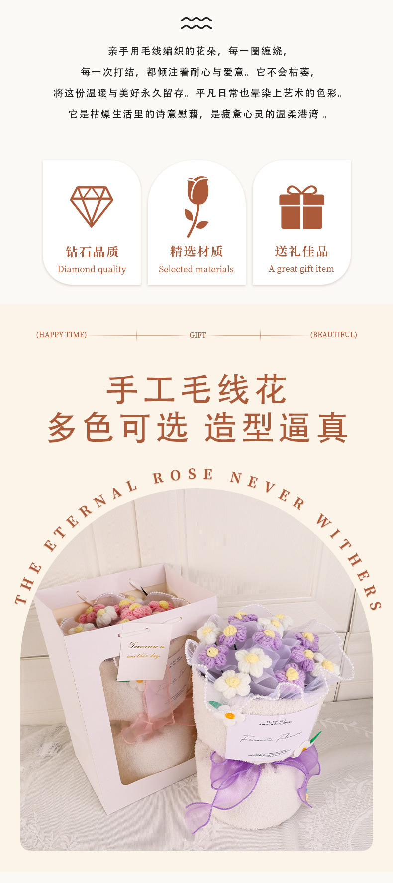 クリエイティブでかわいいウールニットブーケ、フレグランスニッチな完成花、友人、ガールフレンド、親友への誕生日プレゼントとして