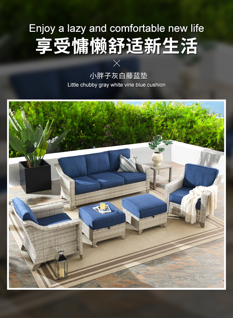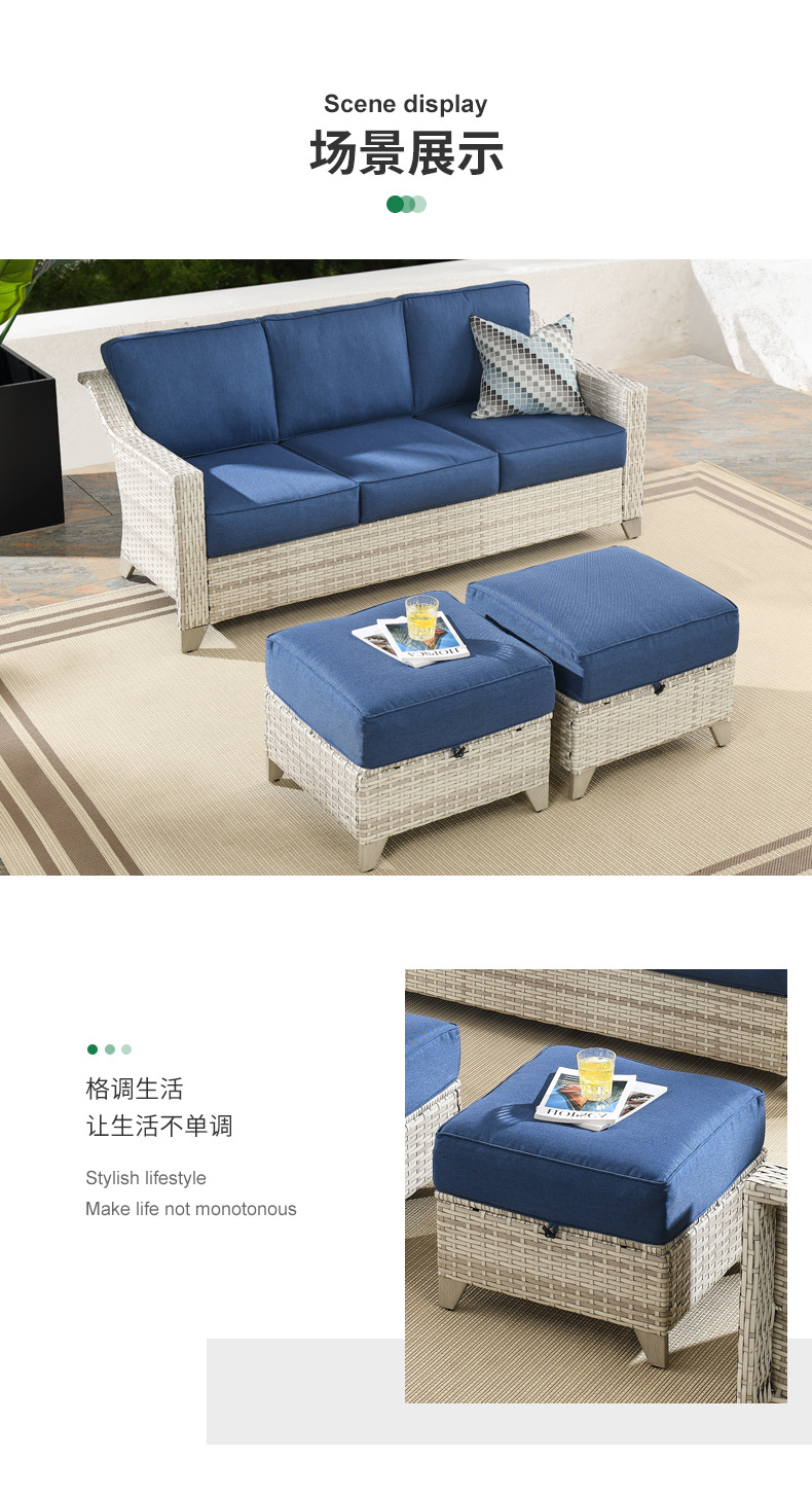 Amazon アウトドアソファ 北米籐組み合わせソファセット 中庭ヴィラ 屋外バルコニー レジャー籐椅子