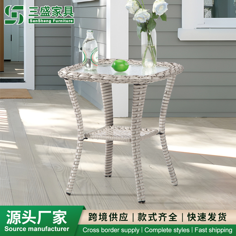 籐製の小さな丸テーブル、小さなコーヒーテーブル、籐製のレジャー家具、ヨーロピアンスタイルのコーヒーテーブル、バルコニーの小さなテーブルと椅子、中庭