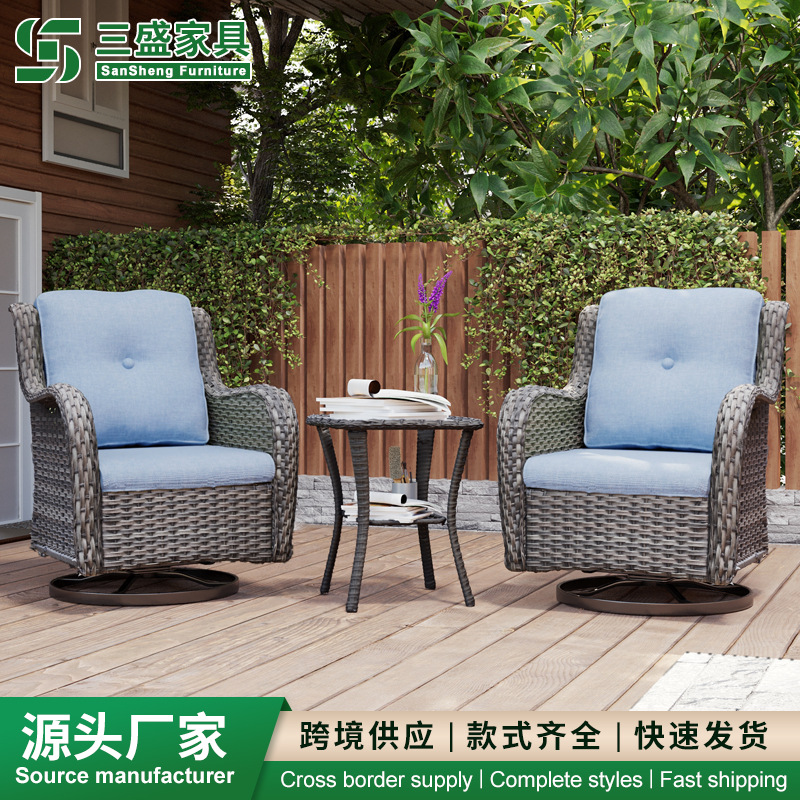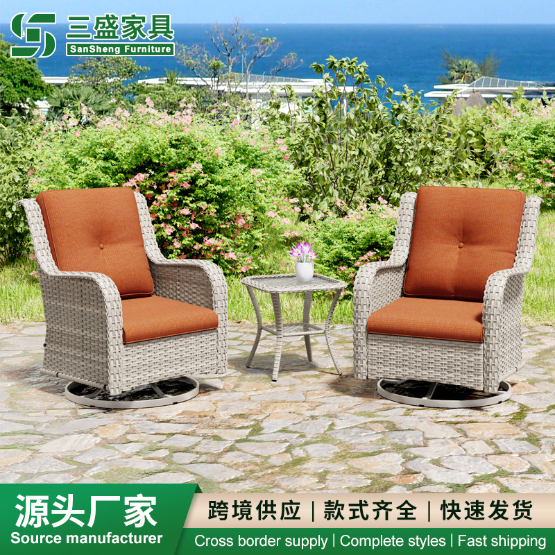 屋外籐製ソファテーブルチェア回転椅子回転ソファ屋外レジャー籐製家具セット回転椅子3点セット