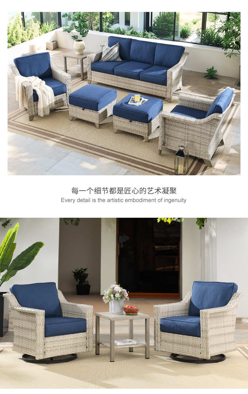 屋外レジャーソファ中国風レジャーガーデンパティオレジャーソファ防水籐ソファ屋外家具組み合わせ