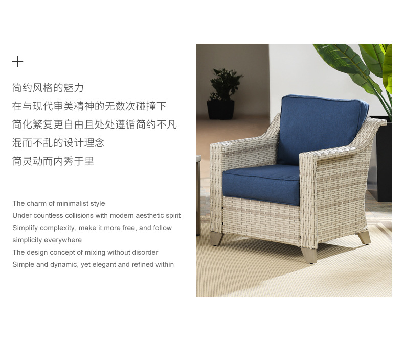 屋外中庭や小さなバルコニー用のカジュアルな籐椅子、防水性と日焼け防止の籐家具、手編みの籐ソファを提供する国境を越えた特別な供給