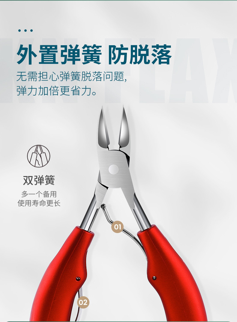斜口指甲钳修剪不锈钢防飞溅指甲剪大开口指甲刀尖嘴斜口深入甲沟