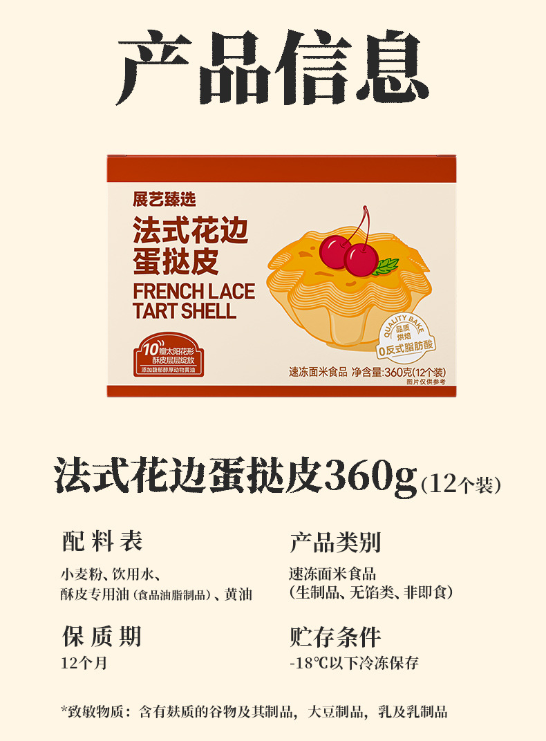 Zhanyi Zhenxuan フレンチレースエッグタルト皮 360g (12 個) 20 箱/箱