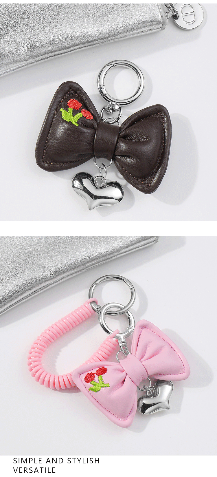 新しいミュウスタイルシンプルで甘くてファッショナブルなマルチカラーレザー刺繍チェリーCCBラブDIYキーホルダーペンダント